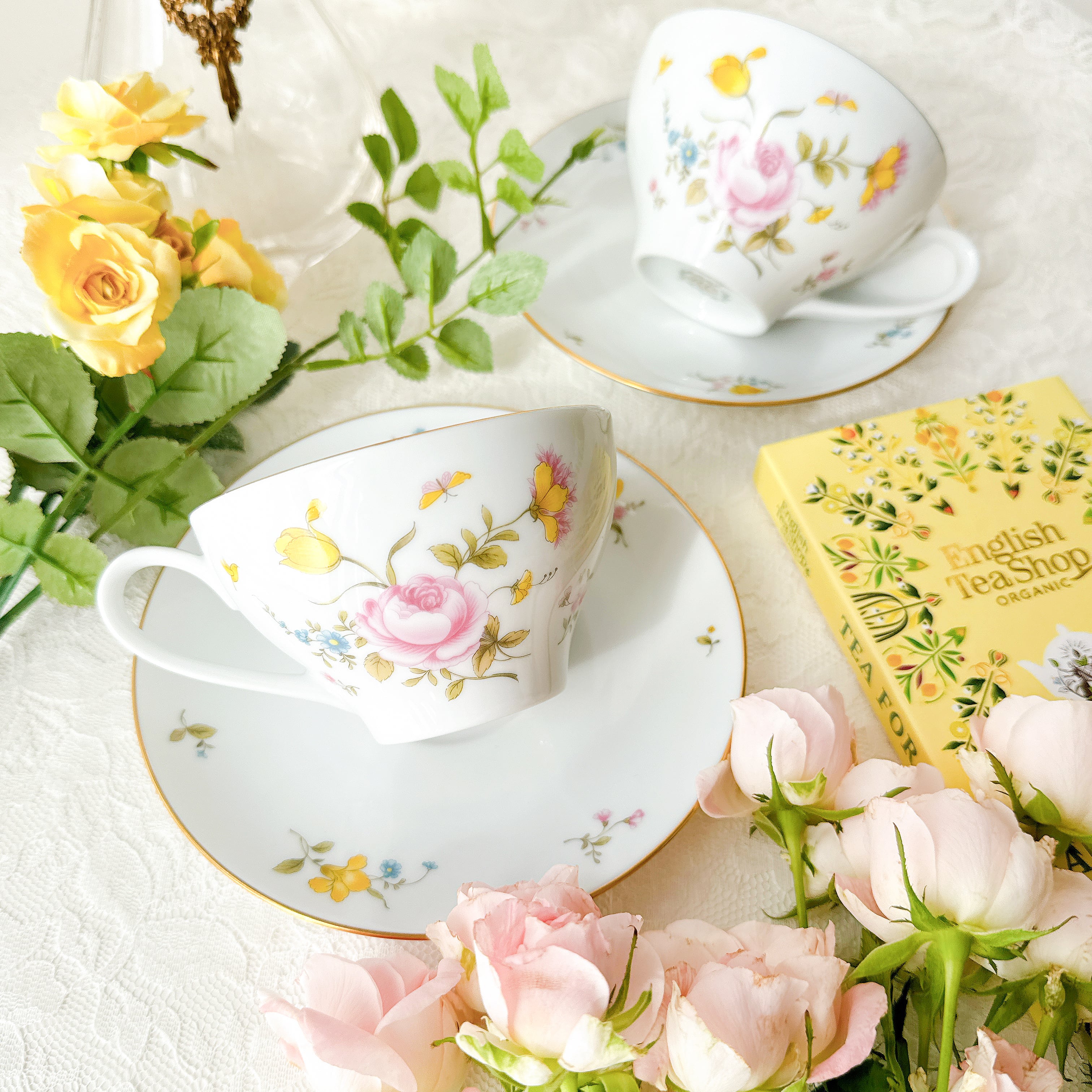 【vintage】Nittoroyal RC ニットーロイヤルRC オールドノリタケ バラと蝶のティーカップ&ソーサー