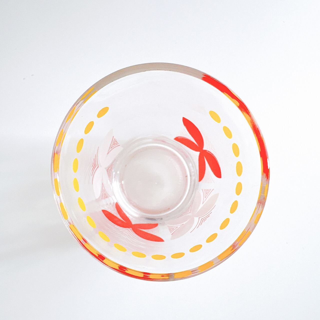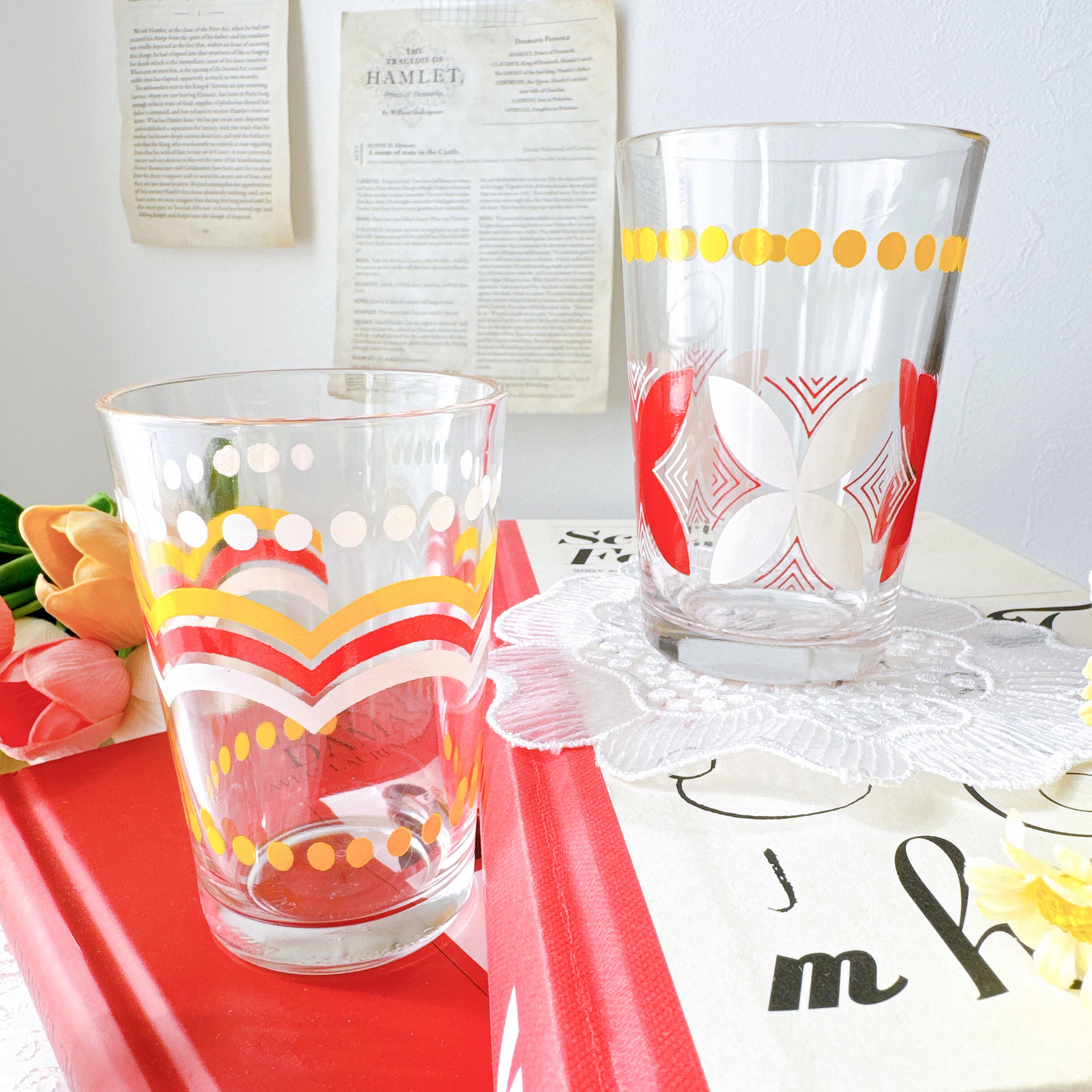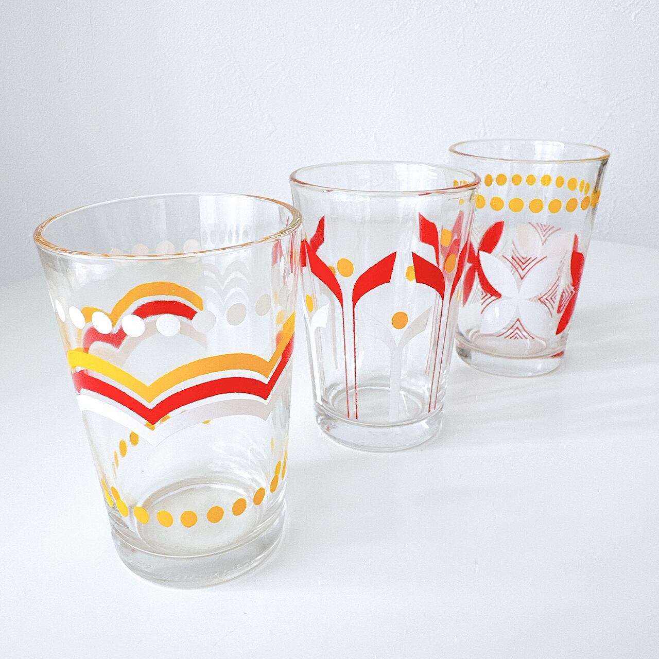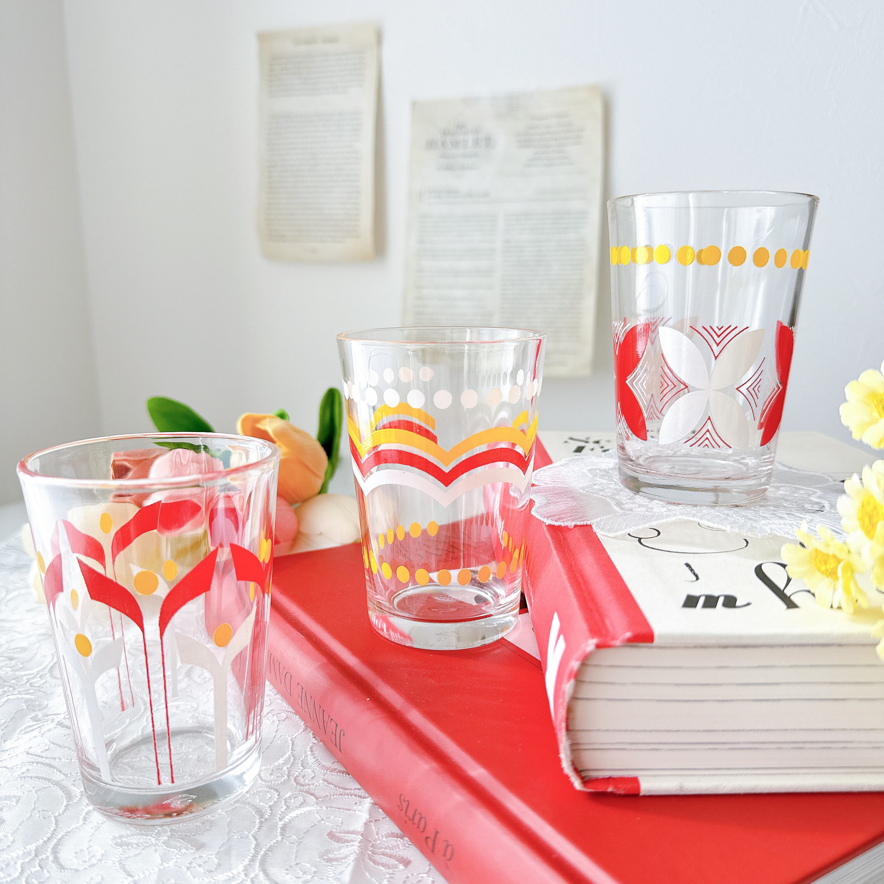 色とりどりのパターンが目を惹く、昭和レトロな小ぶりグラスたち。