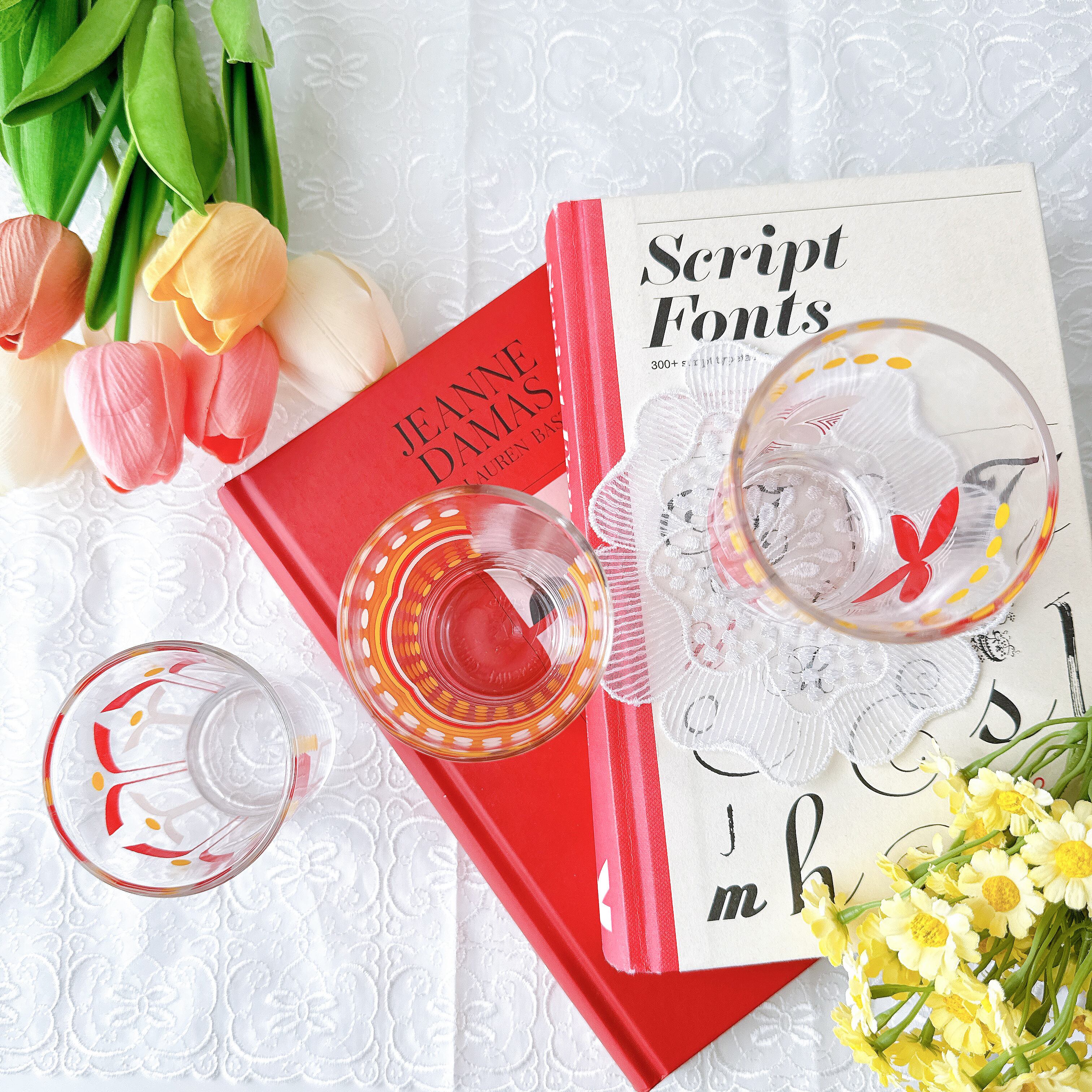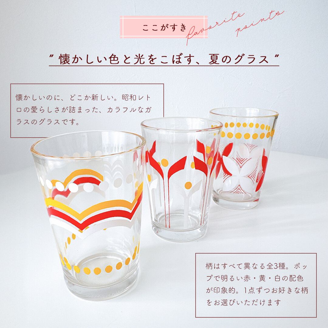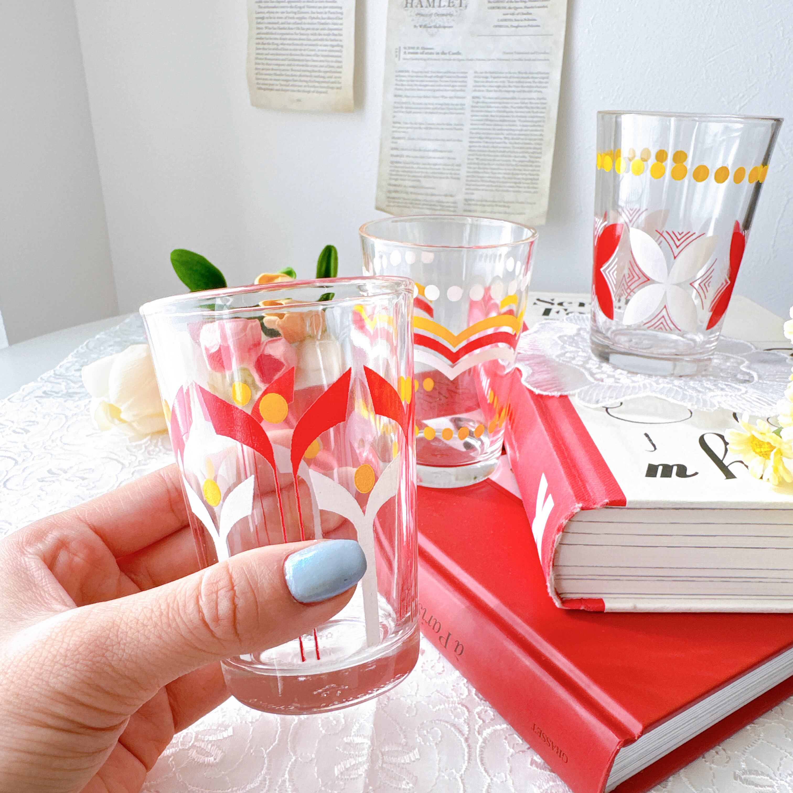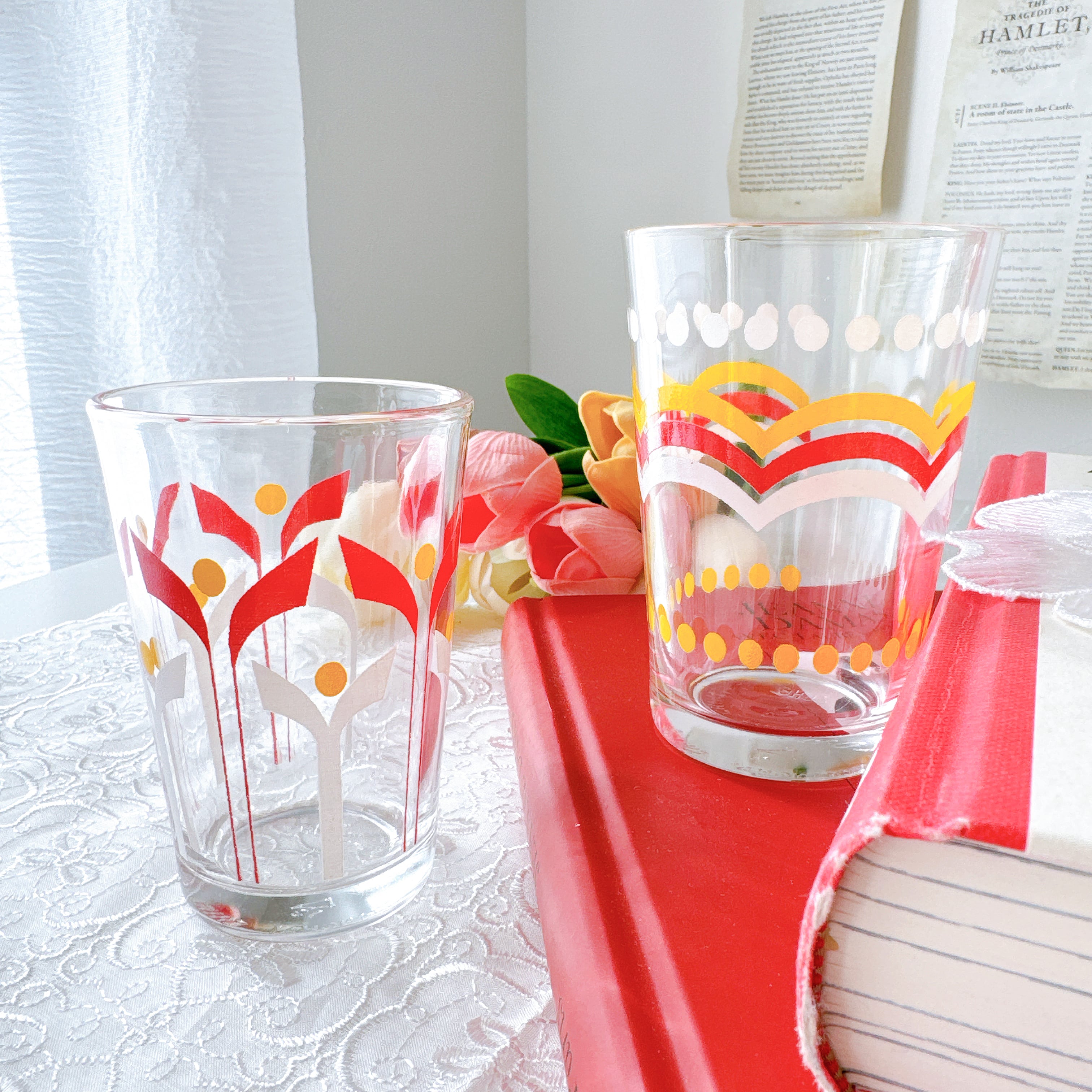 色とりどりのパターンが目を惹く、昭和レトロな小ぶりグラスたち。