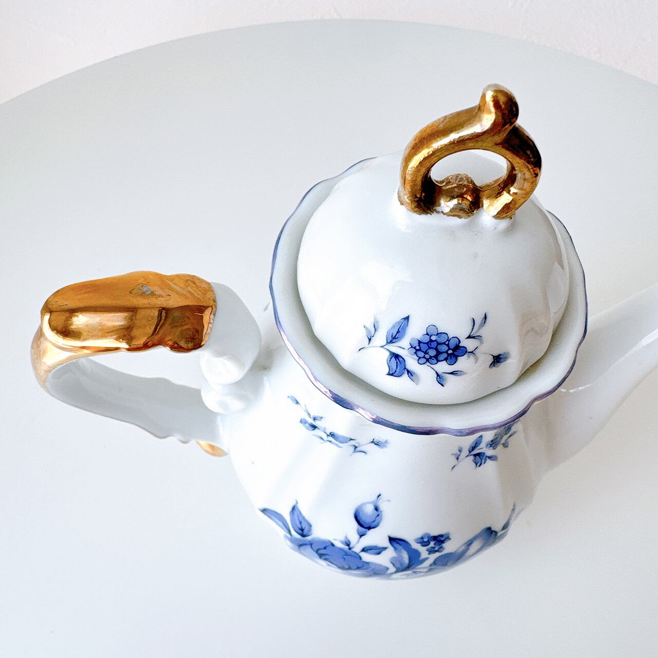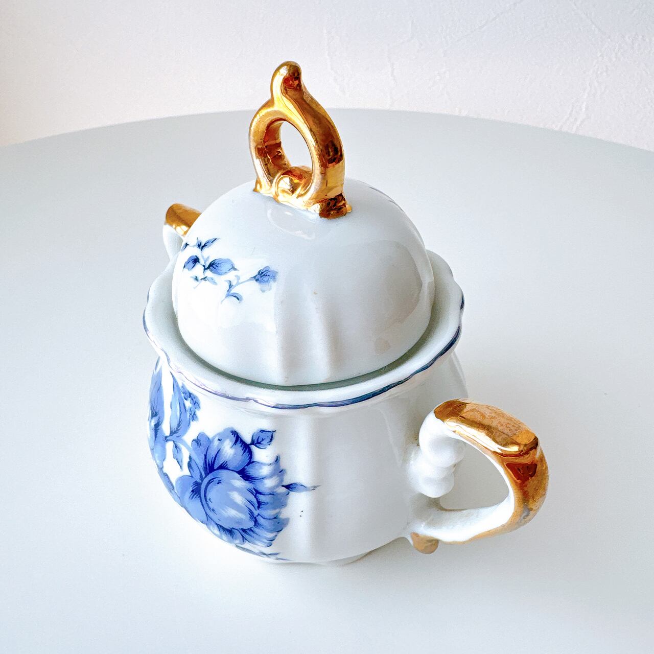 Violet china ブルーフラワーと金彩のティーポット&シュガーポットセット