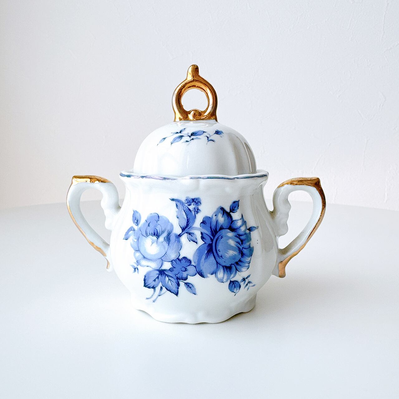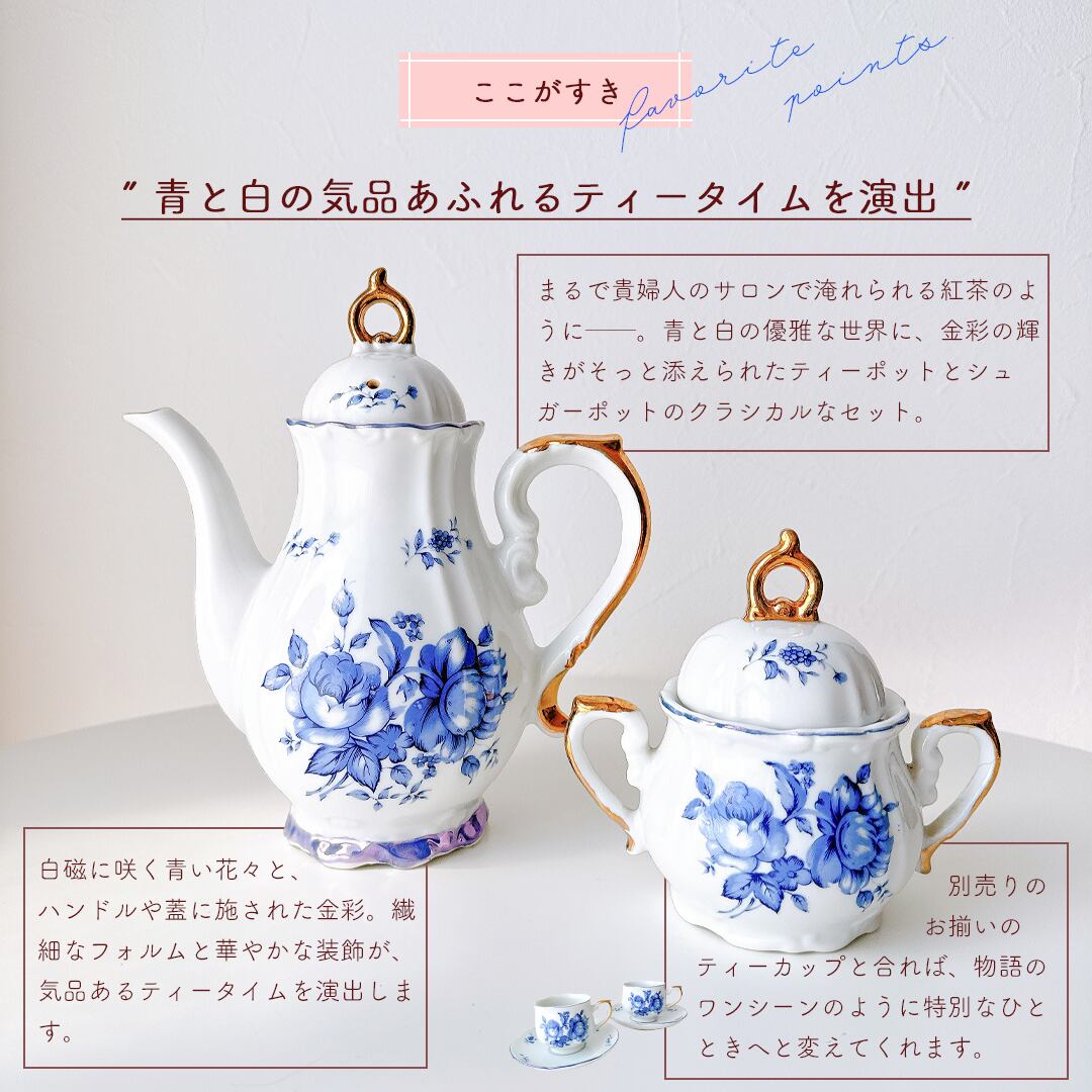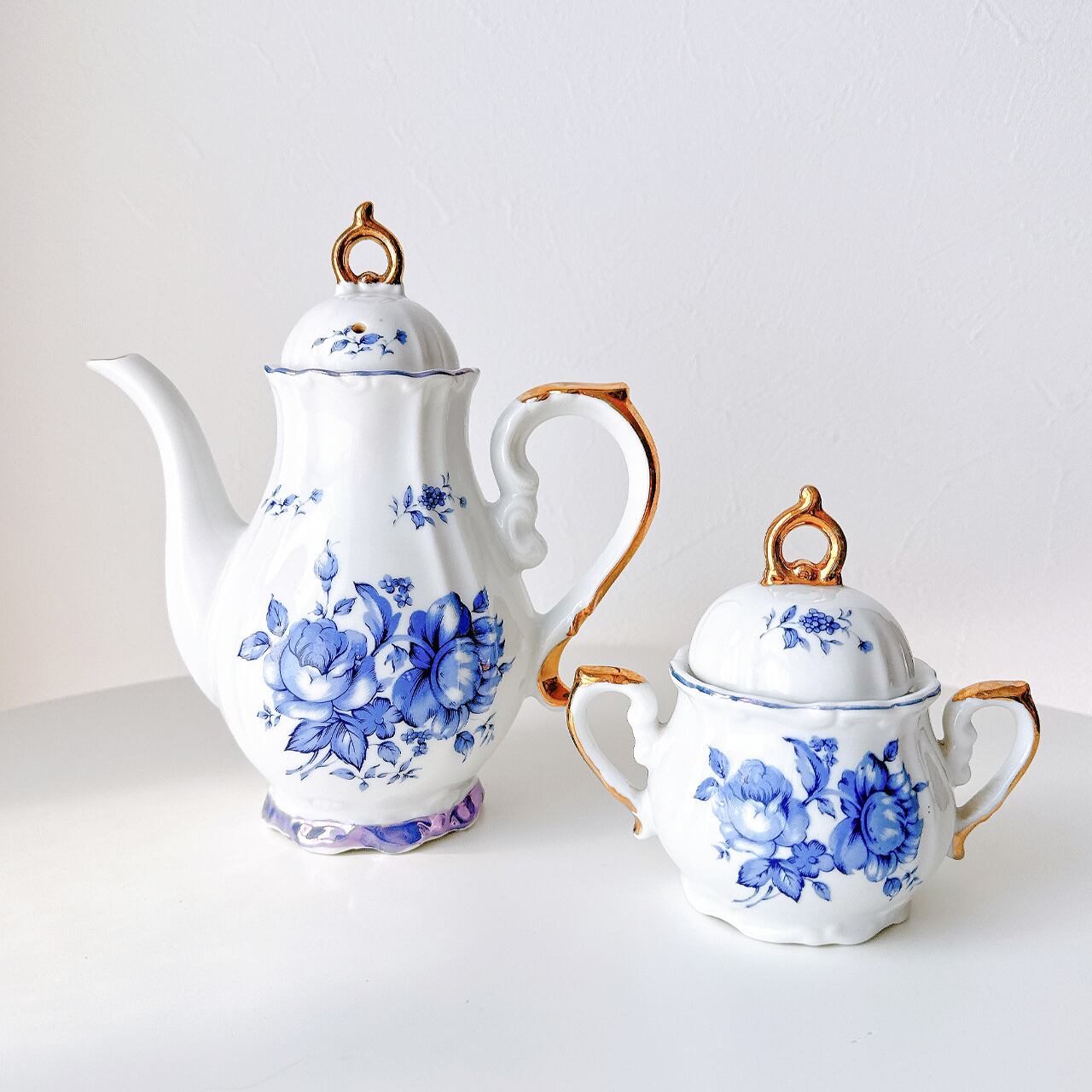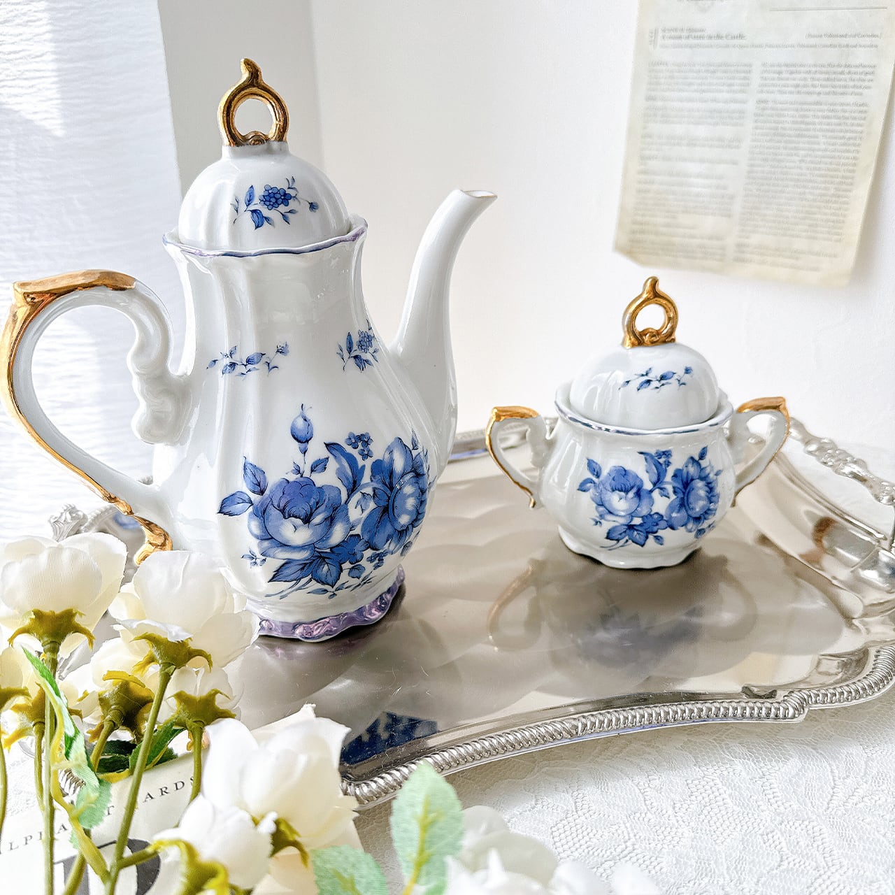 【青と白の気品あふれる食卓へ。Violet Chinaのティーポット&シュガーポットセット】