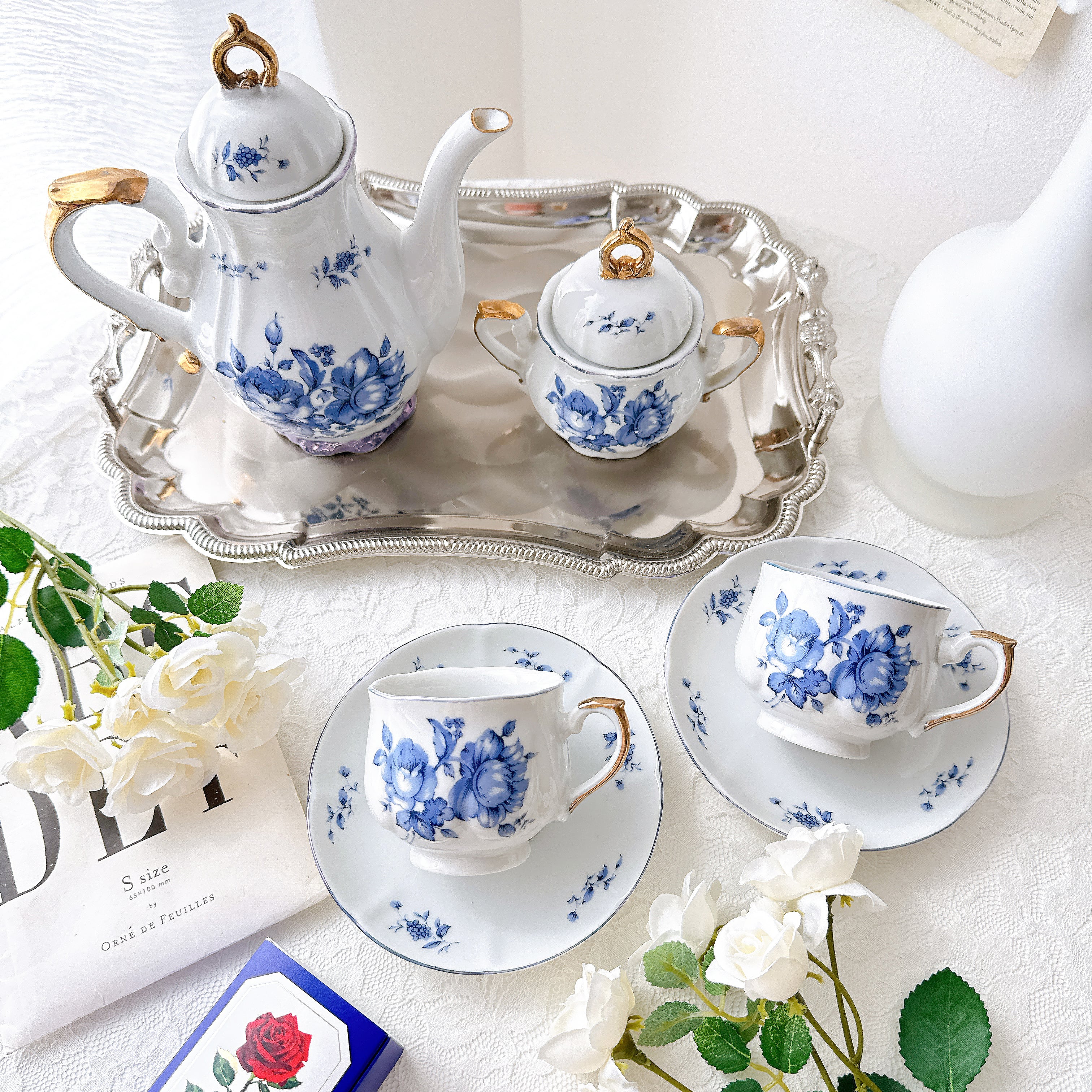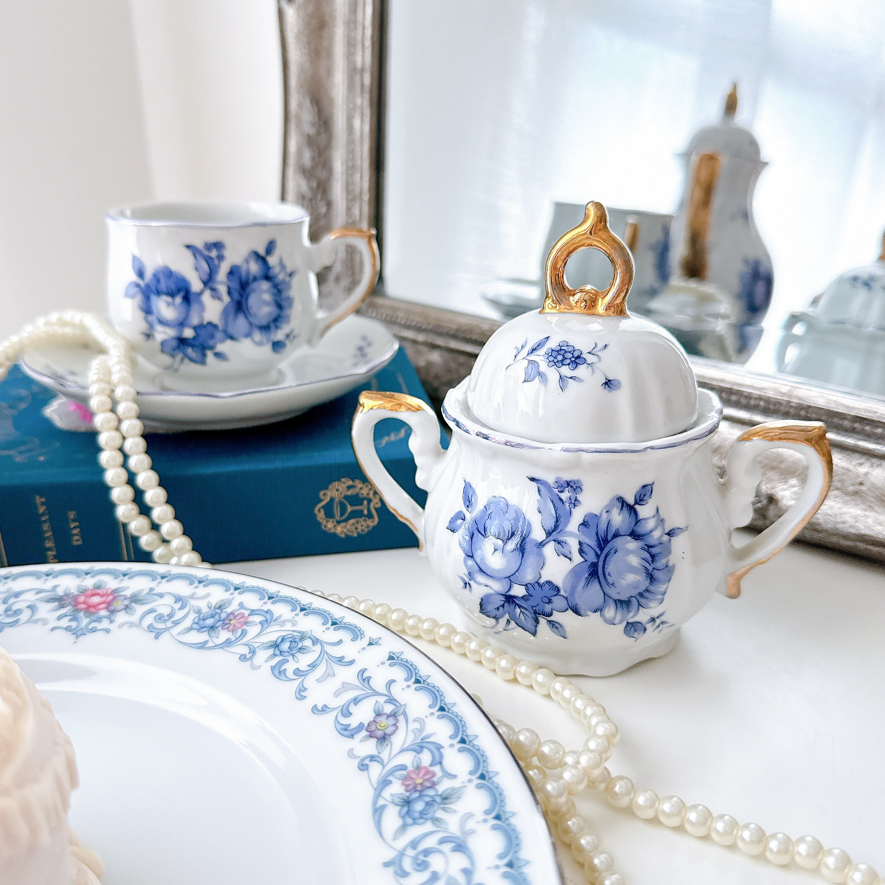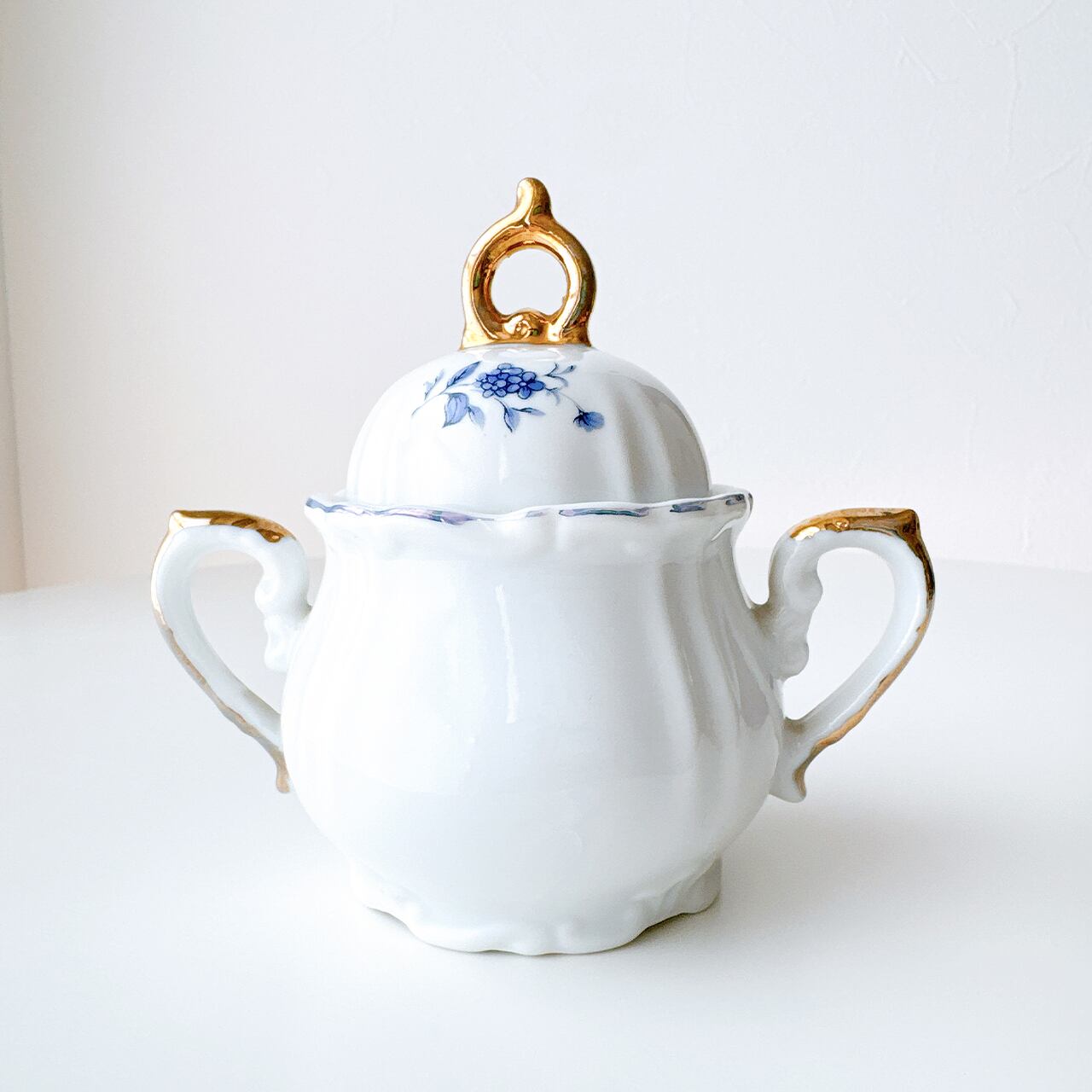 【青と白の気品あふれる食卓へ。Violet Chinaのティーポット&シュガーポットセット】