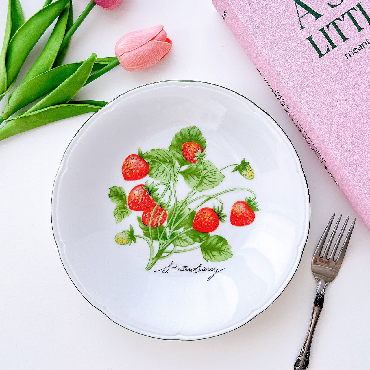 【甘酸っぱい物語を閉じ込めたような、いちご柄の深皿】