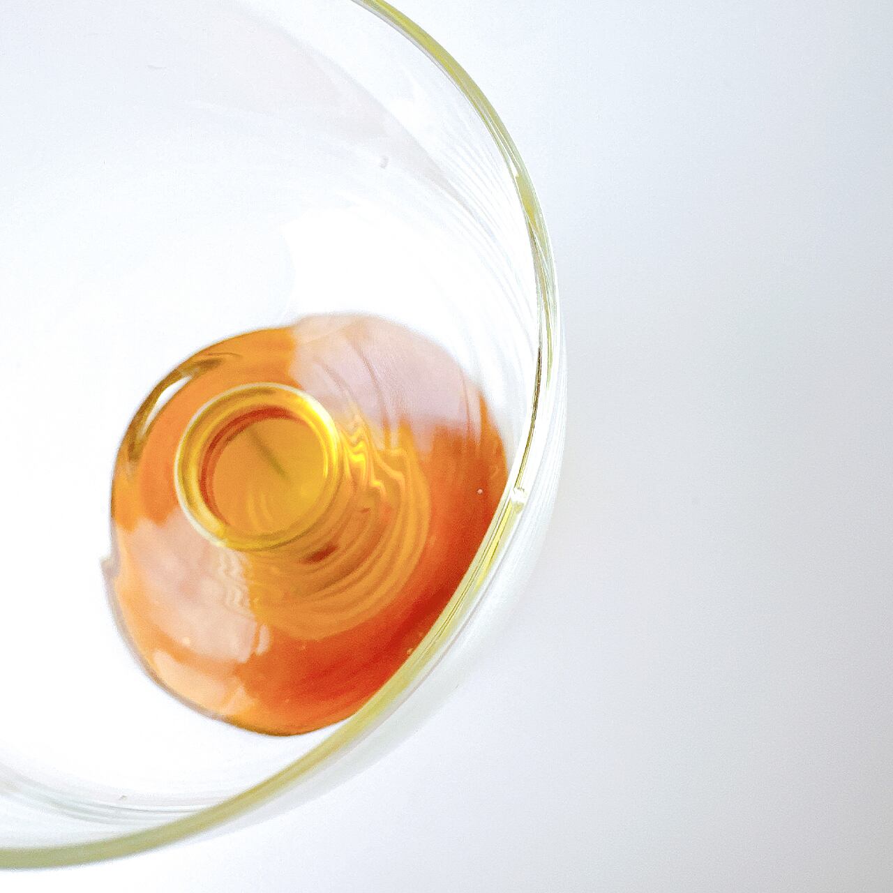 透明なボウルとのコントラストが美しく、赤ワインはもちろん、白ワインや果実酒を注いでも映えるデザイン。
