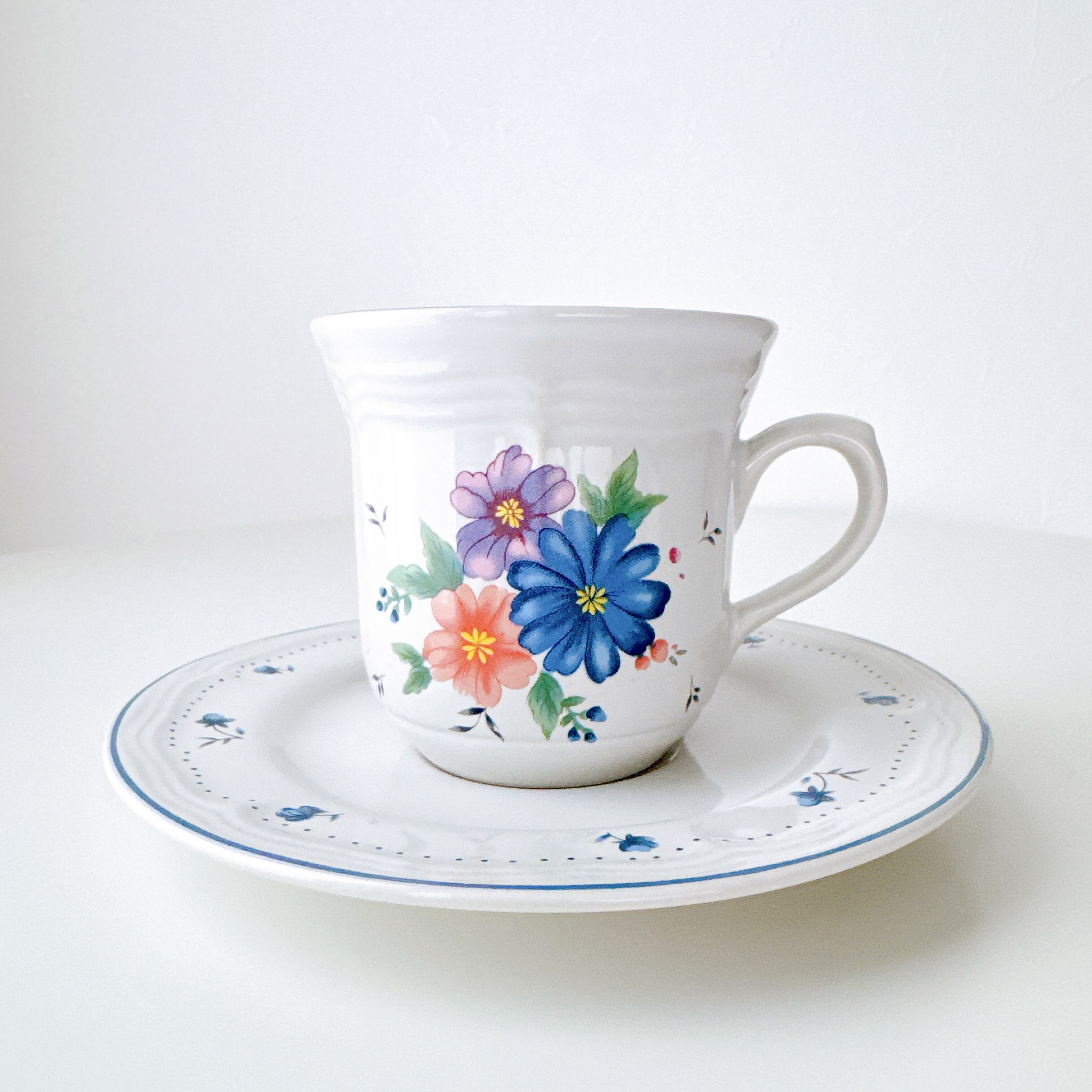 素朴で可憐なフラワーブーケが描かれた、愛らしいティーカップ&ソーサー。