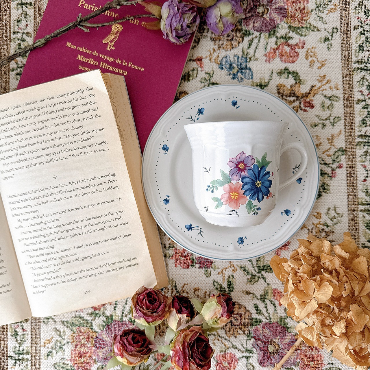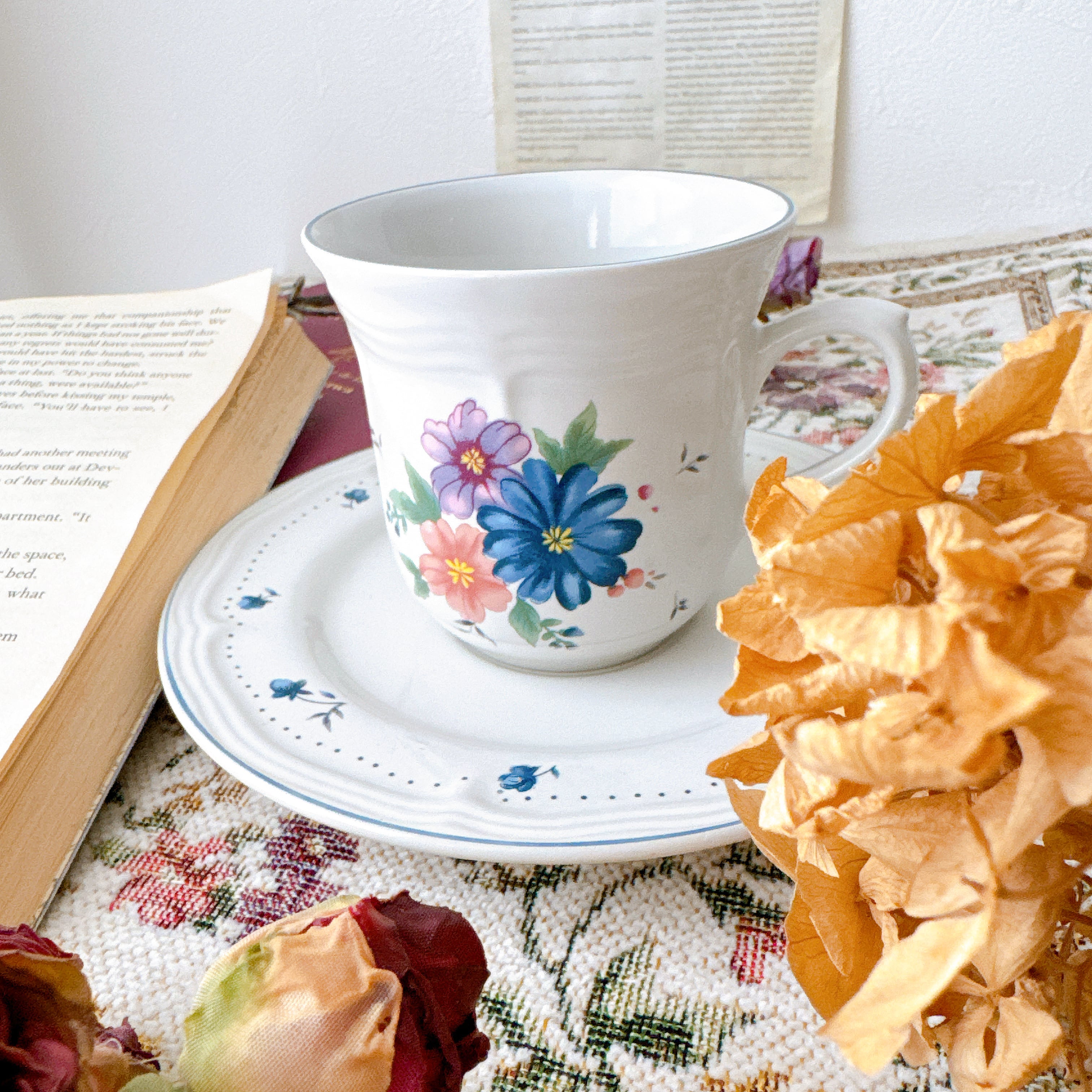 【絵本の挿絵のような、やさしいフラワーティーカップ】