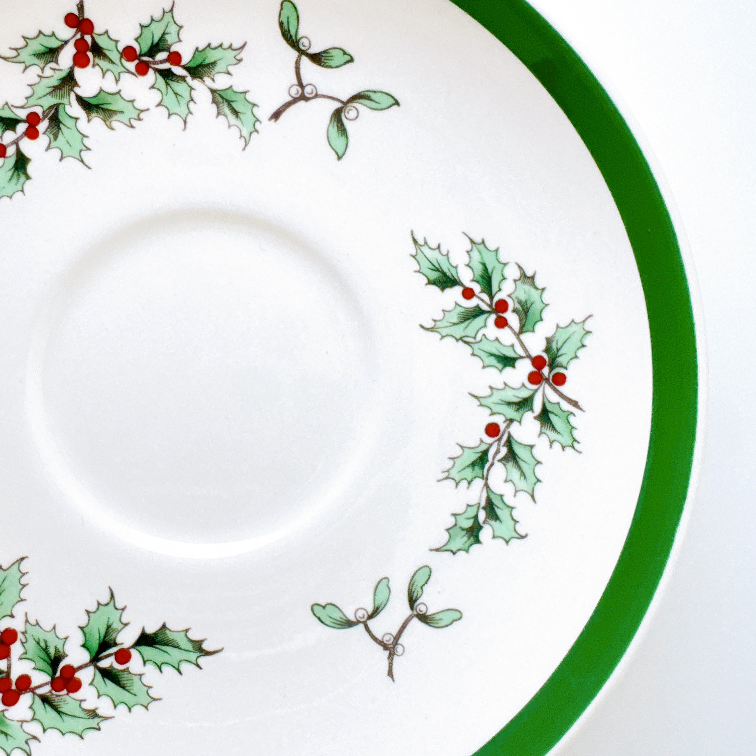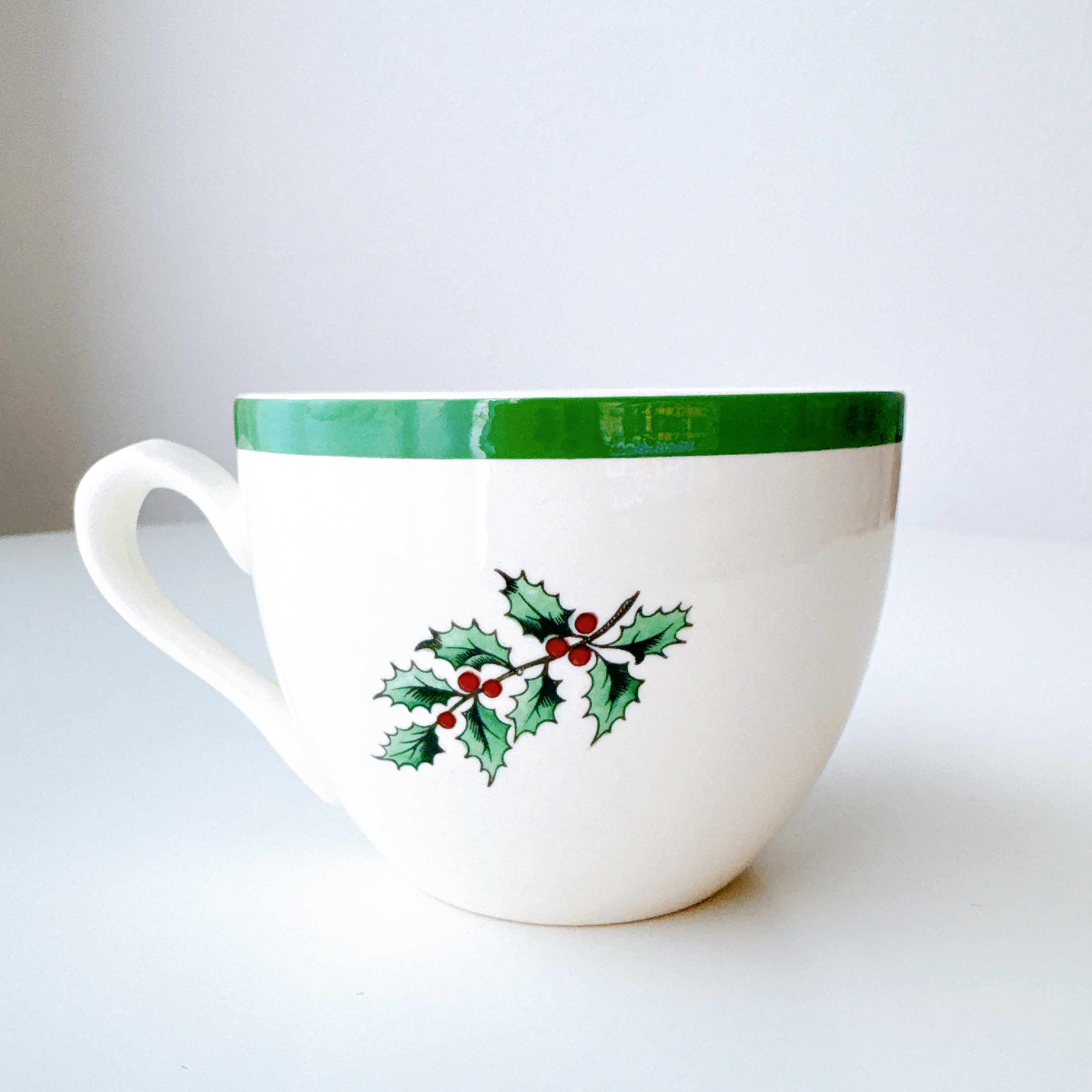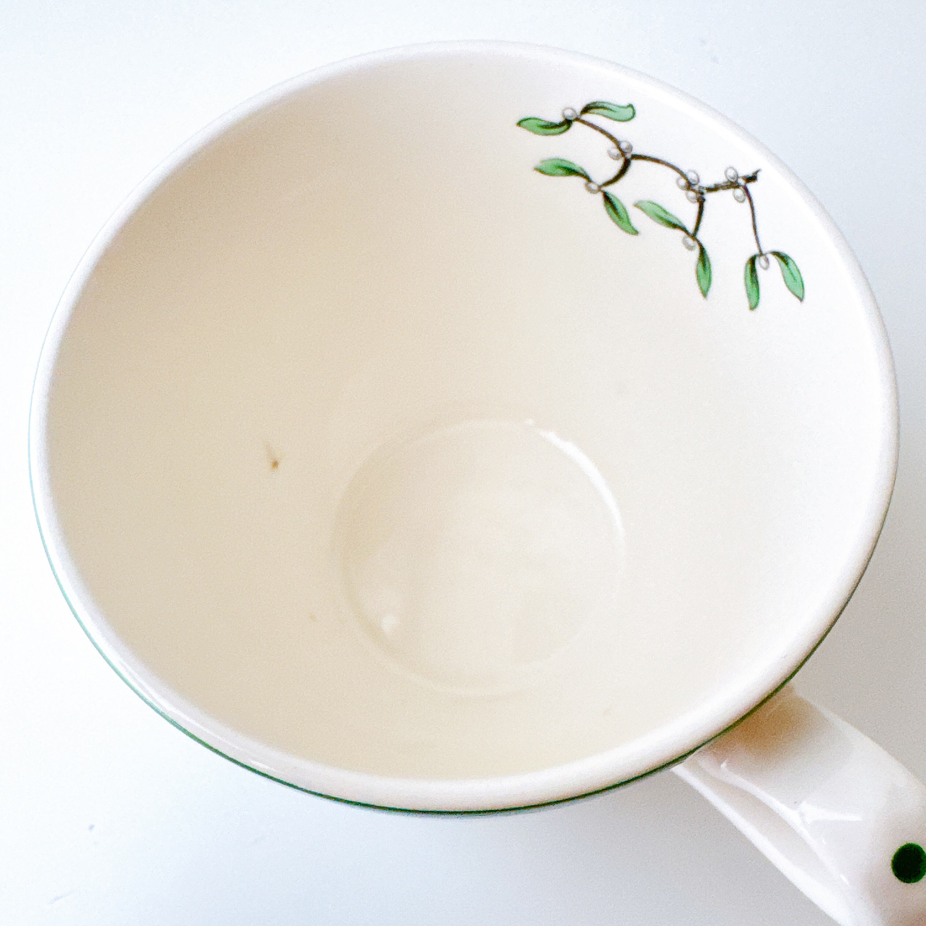 英国の名窯 Spode(スポード)が1938年に発表して以来、世界中で愛され続けている「Christmas Tree」シリーズ。その象徴的なツリーが、ティーカップにやわらかく描かれています。