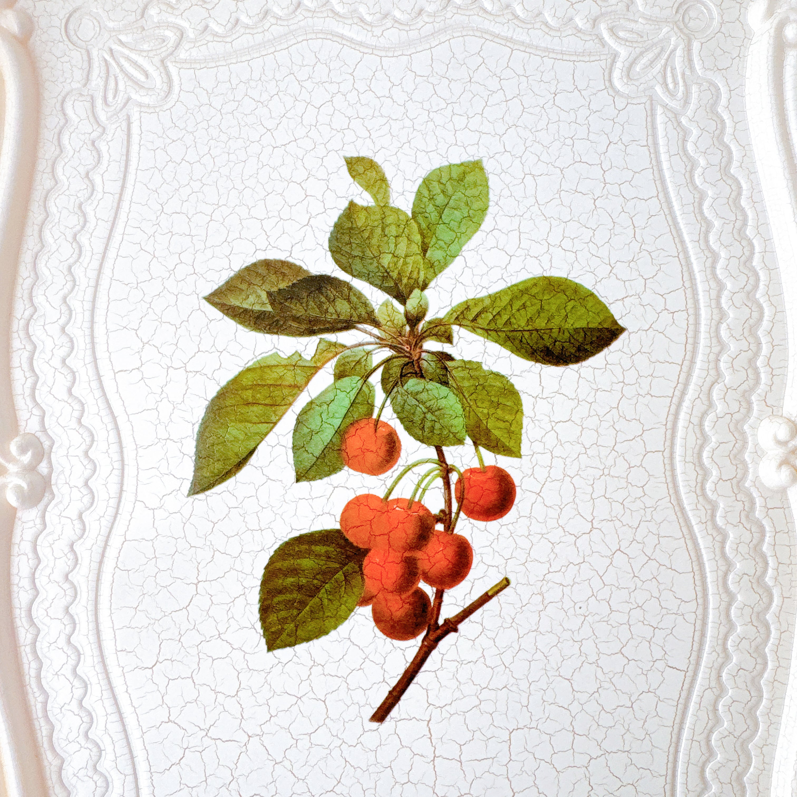 やわらかなアイボリー色の地に、中央には赤い実をつけた植物が、まるで植物画のように描かれています。