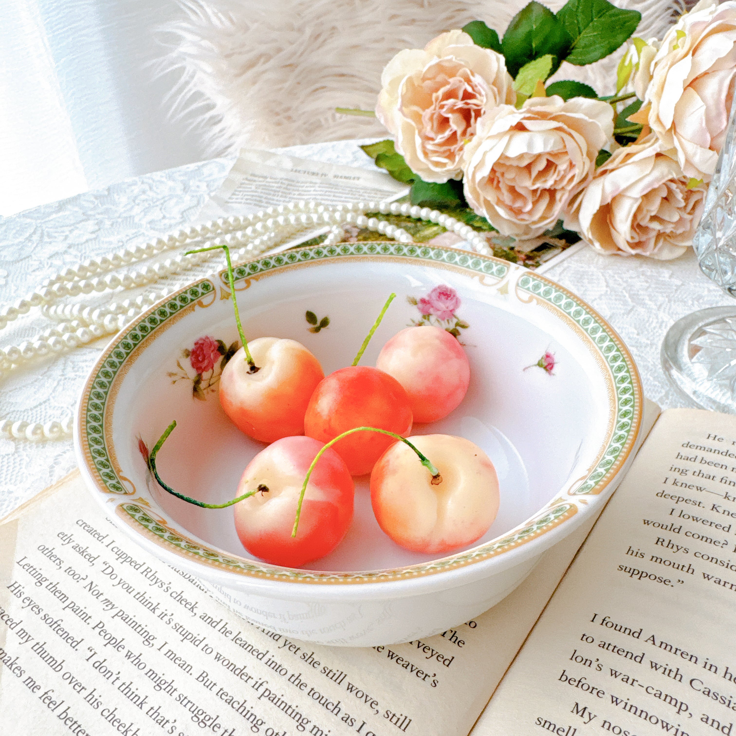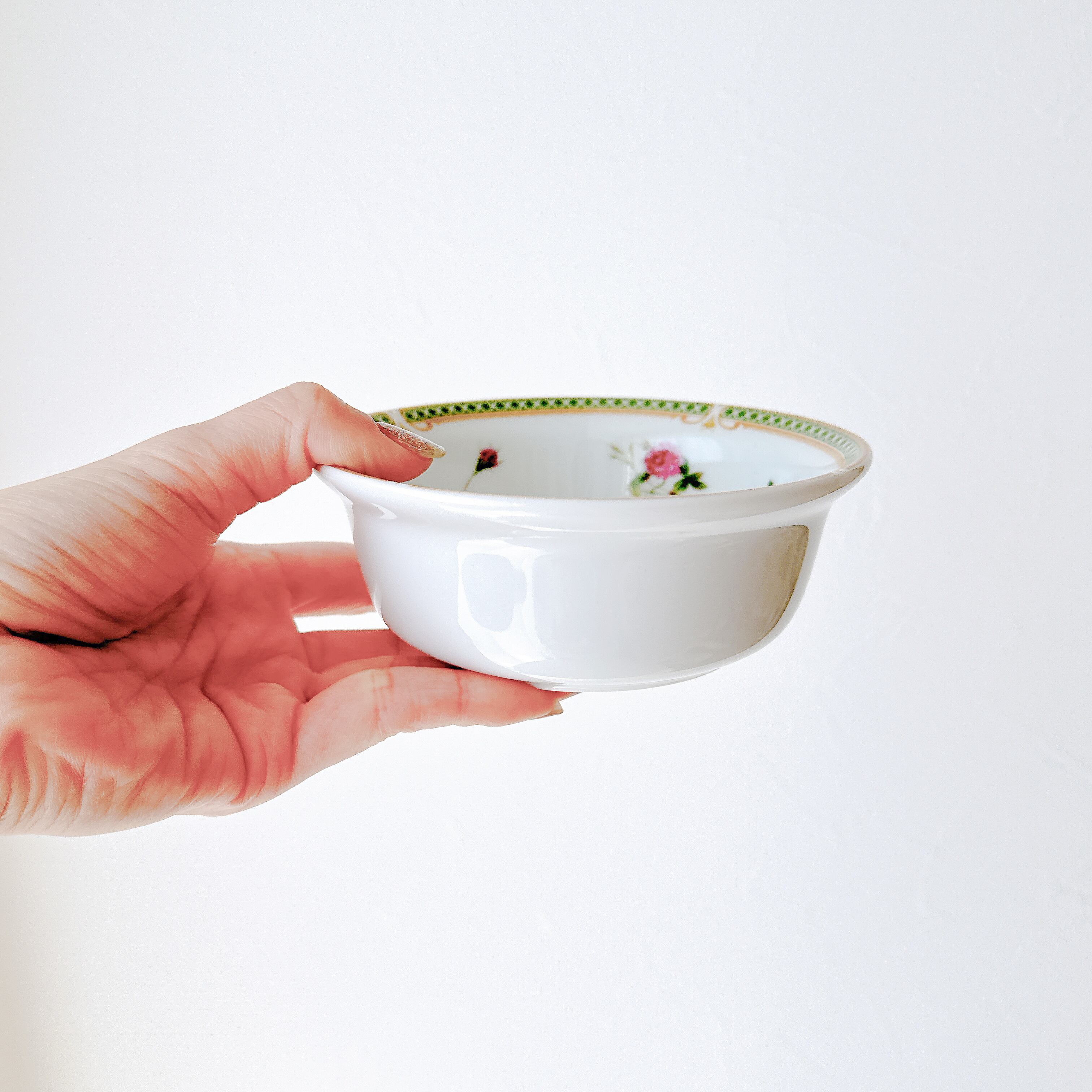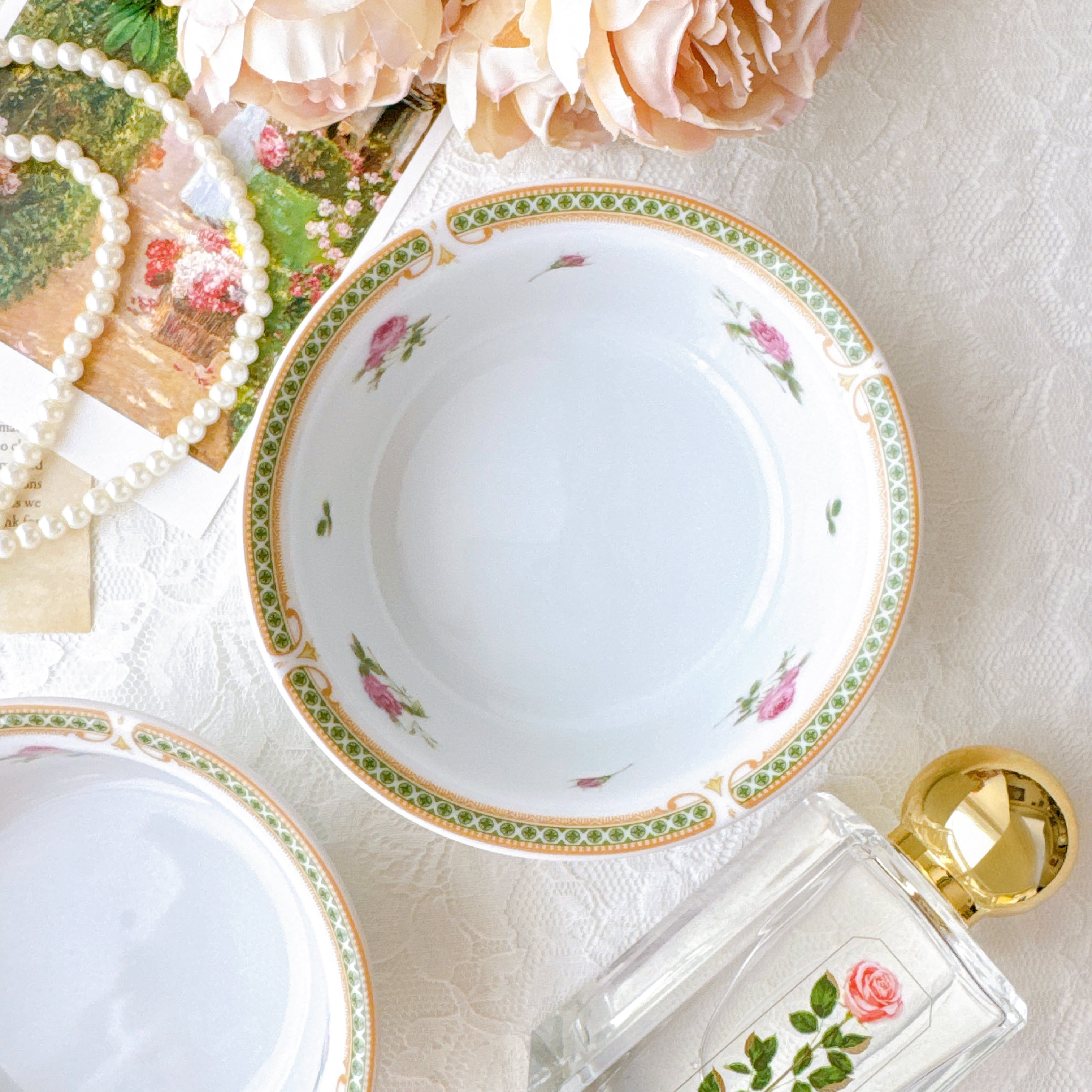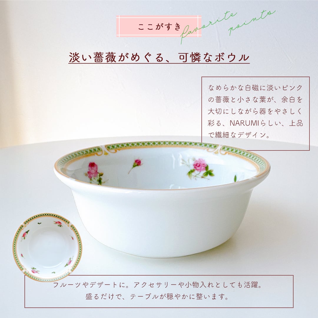NARUMIが手がけた、やさしいローズガーランドが器を囲む、上品で可憐なボウル。