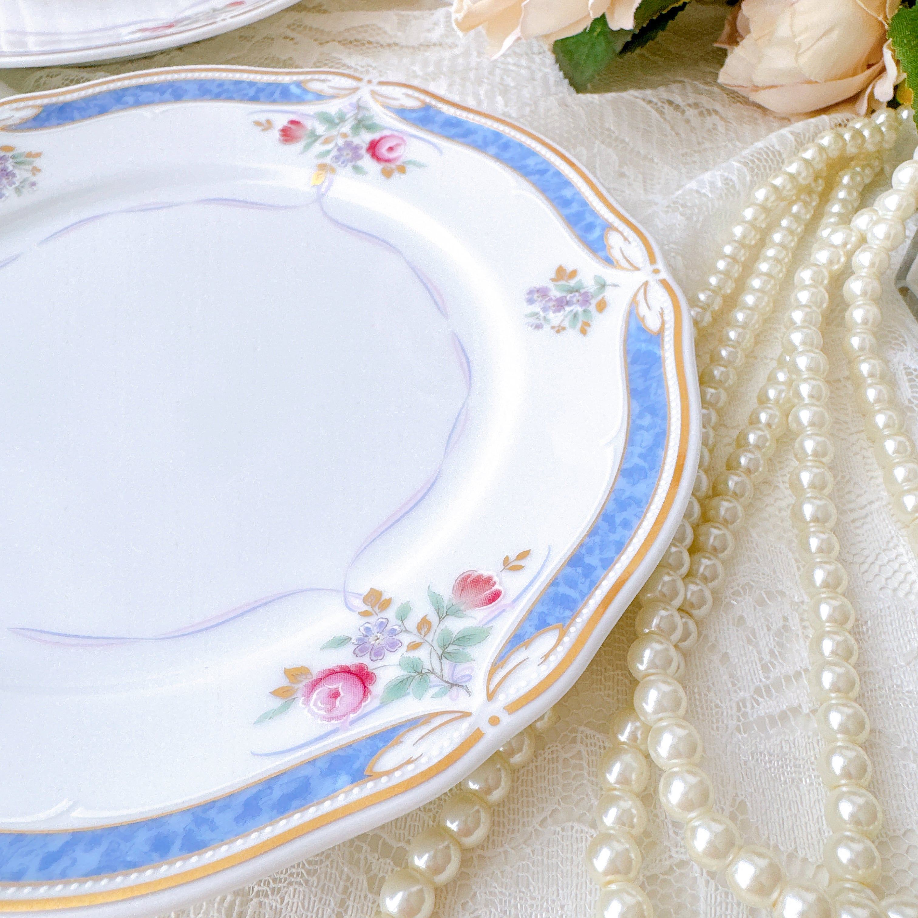縁取りの繊細な装飾や、光を受けたときのなめらかな艶。ノリタケらしい上品な仕上がりが、日常を少しだけ特別な時間へと導いてくれます。特別な日にも、静かな午後にも。この一枚があるだけで、食卓は小さな舞台になります。