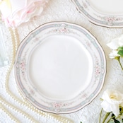 デザートや焼き菓子をのせたり、ティータイムのプレートとしても。やさしく可憐なヨーロッパ調の雰囲気をテーブルに添えてくれる一枚です。