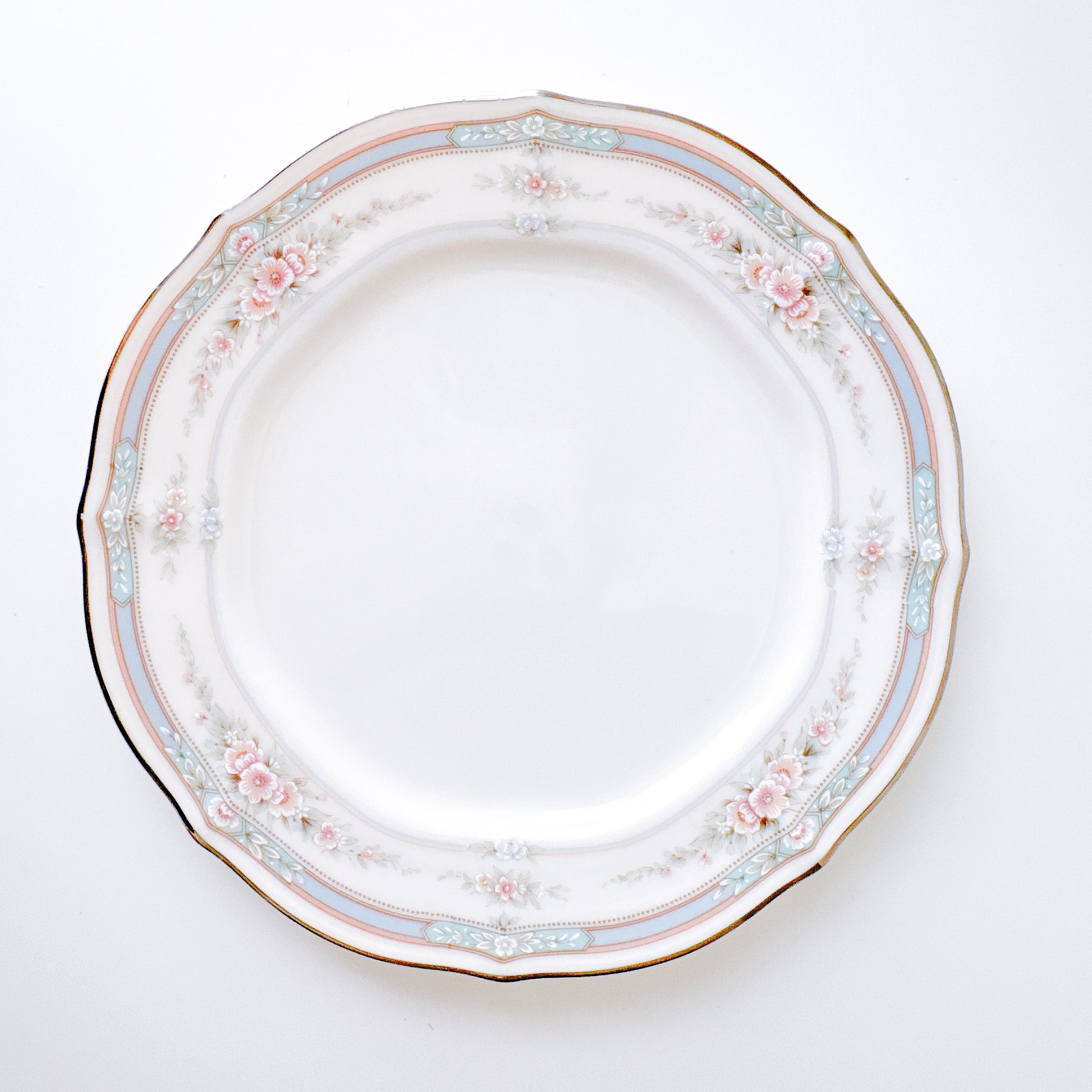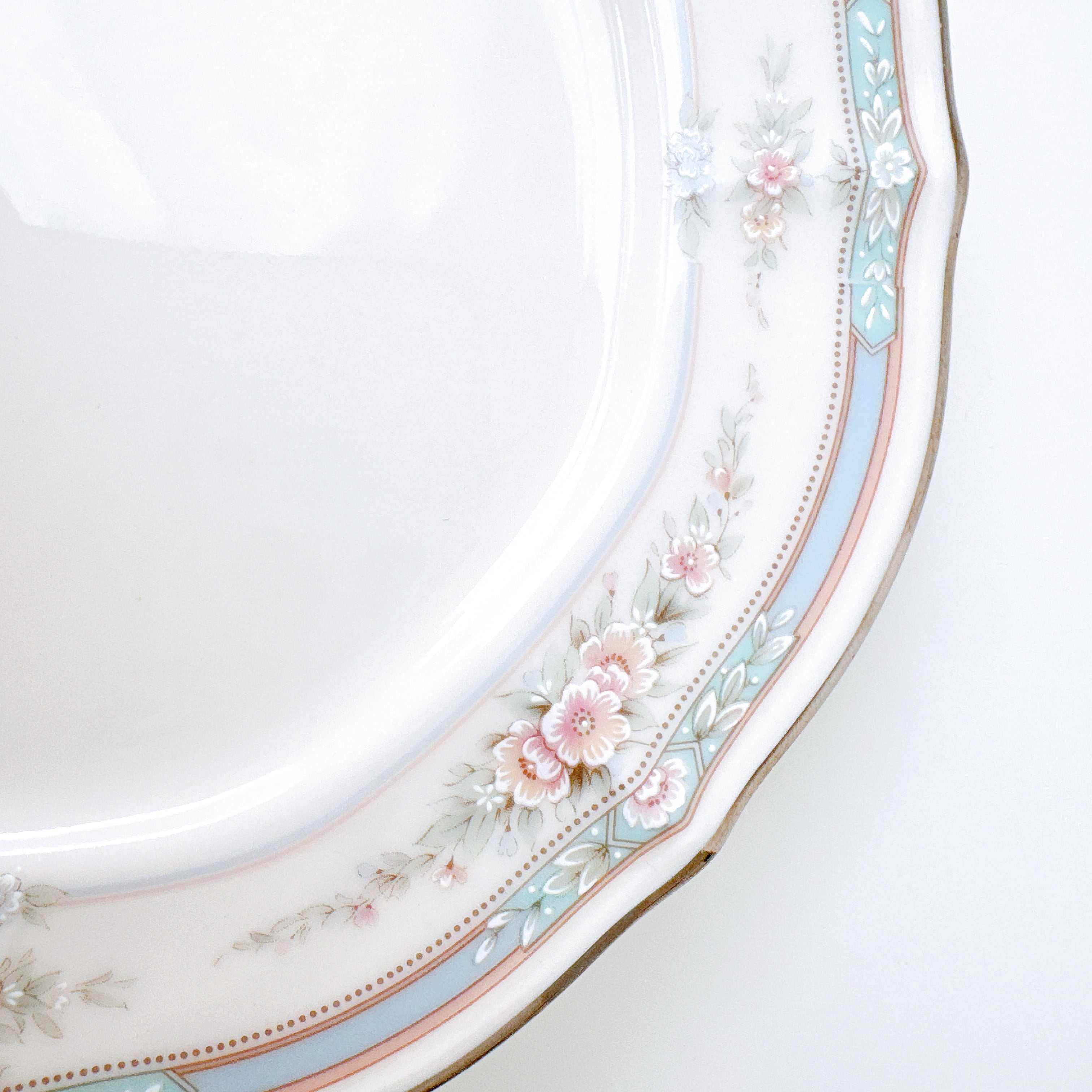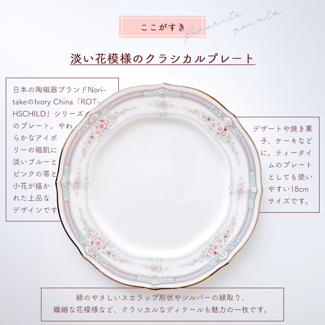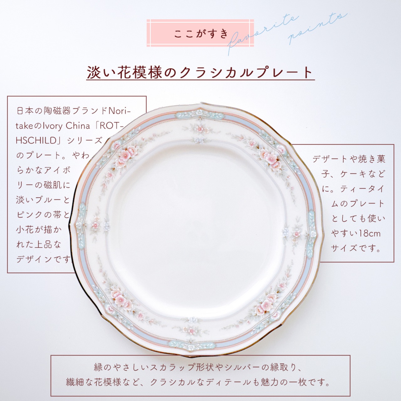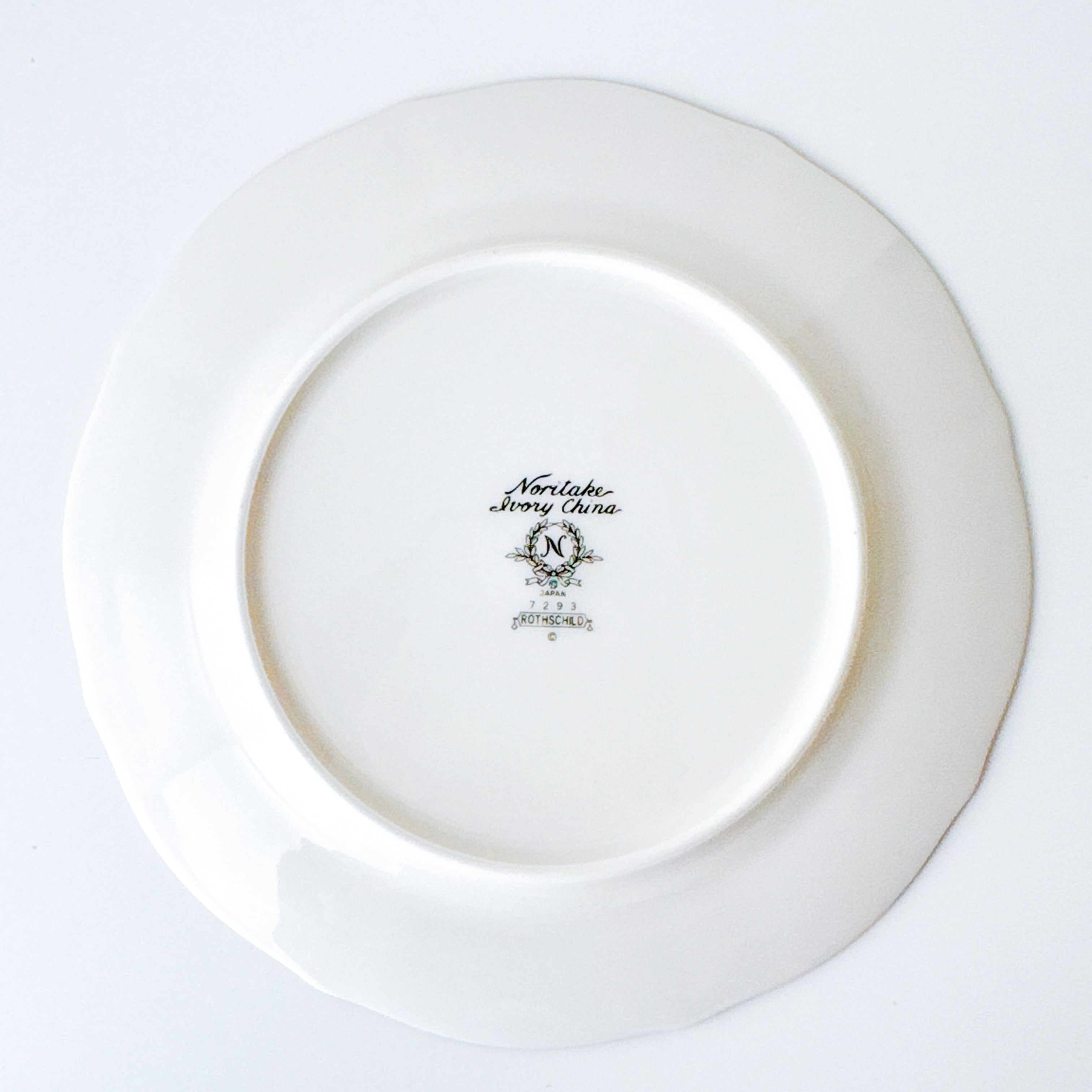 やわらかな色彩と、静かな気品。日本を代表する陶磁器ブランド、Noritake (ノリタケ)の Ivory China (アイボリーチャイナ)ラインから生まれた「ROTHSCHILD(ロスチャイルド)」シリーズのプレートです。1986年から2009年頃まで製造され、現在は廃盤となっています。