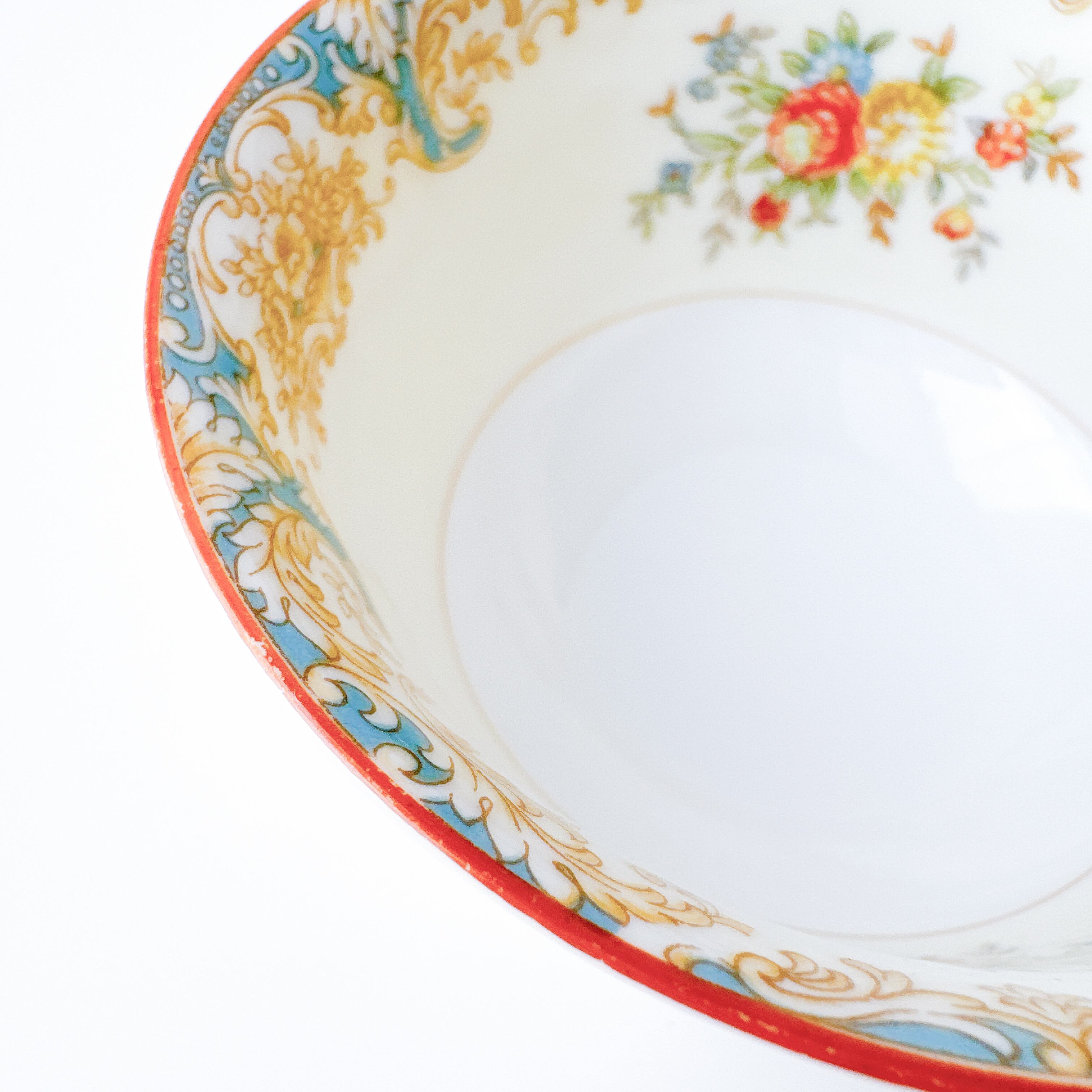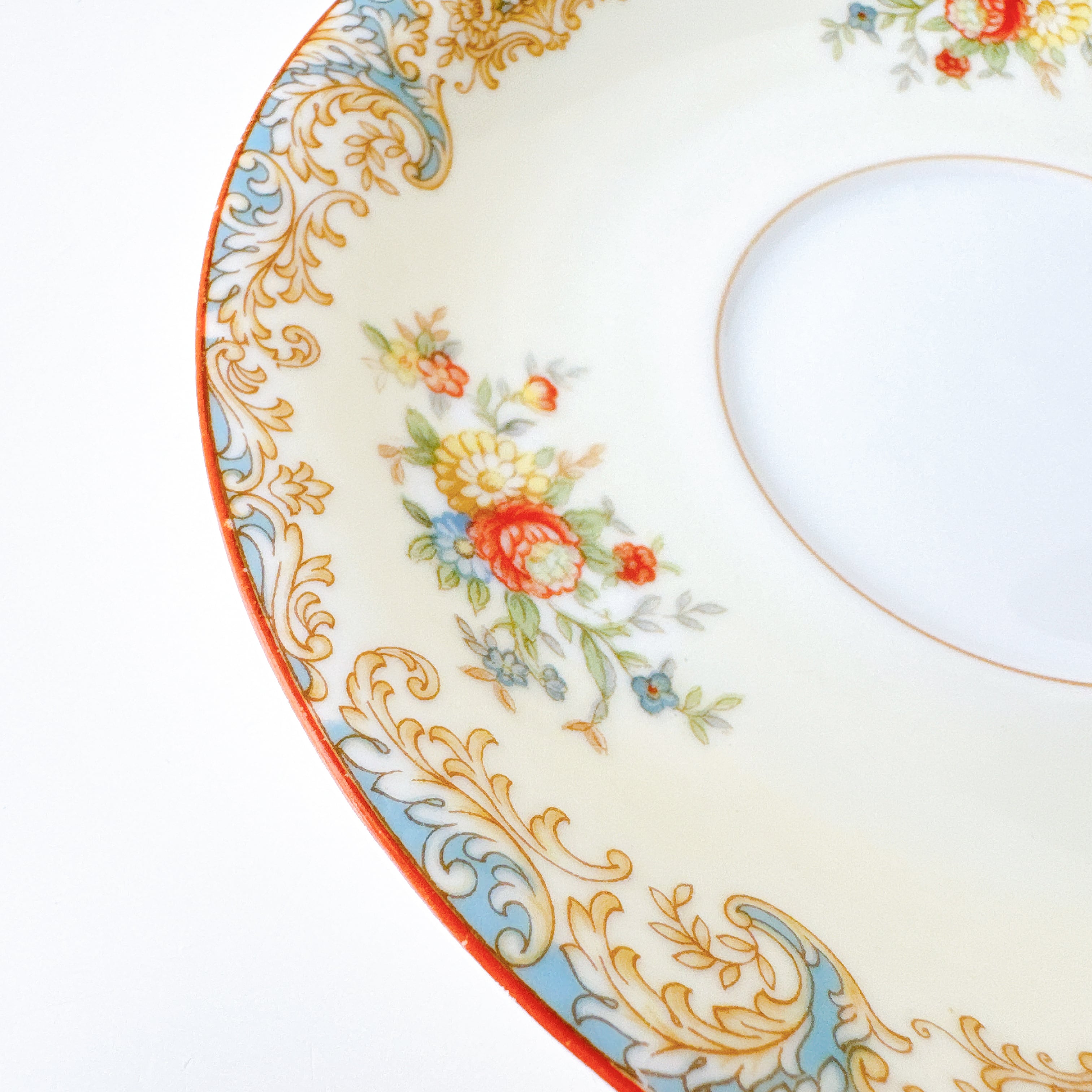 こちらは、1933年〜1953年頃に使われていた、M印のバックスタンプが入った時代のもの。このマークの製品は、当時アメリカをはじめとする海外市場向けに、輸出用として多く作られていたことで知られています。この時期のノリタケは、戦争を挟んだ激動の時代に職人の手で丁寧に作られていました。現在では中々手に入れることのできないヴィンテージ品。コレクションとしてもおすすめの、希少なアイテムです。