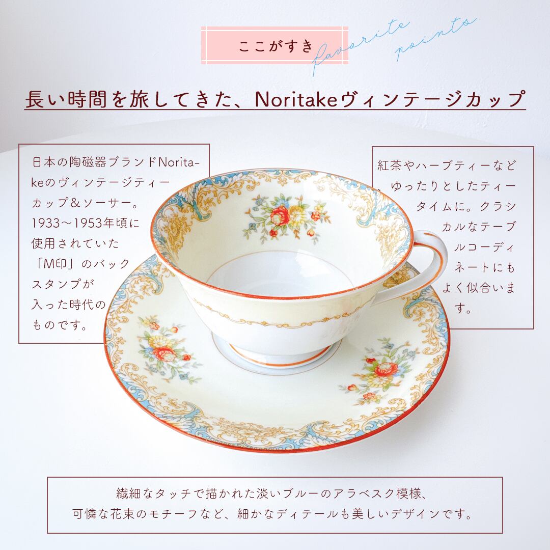 時代を越えて愛されてきた、ノリタケのヴィンテージカップ。優雅なティータイムにぴったりの一客です。