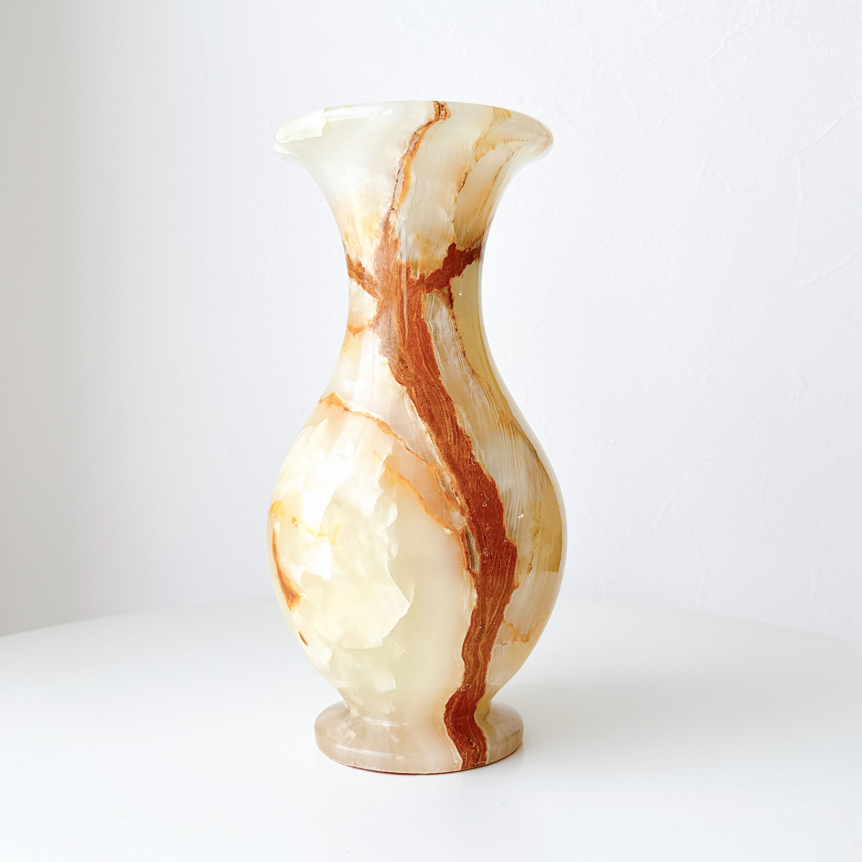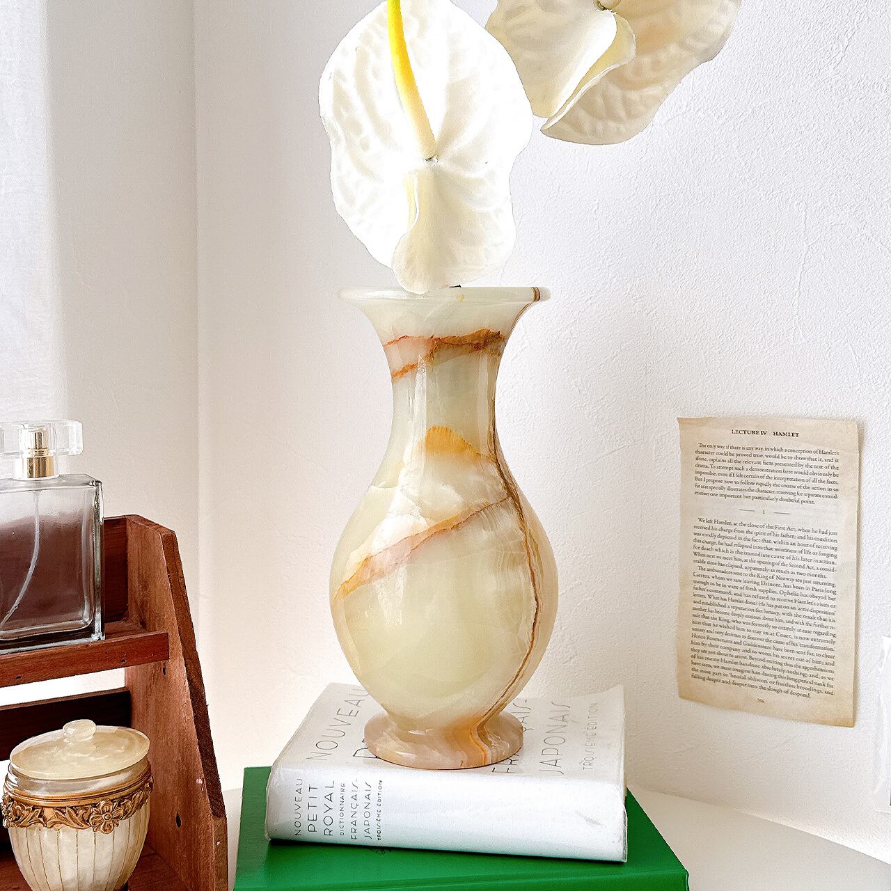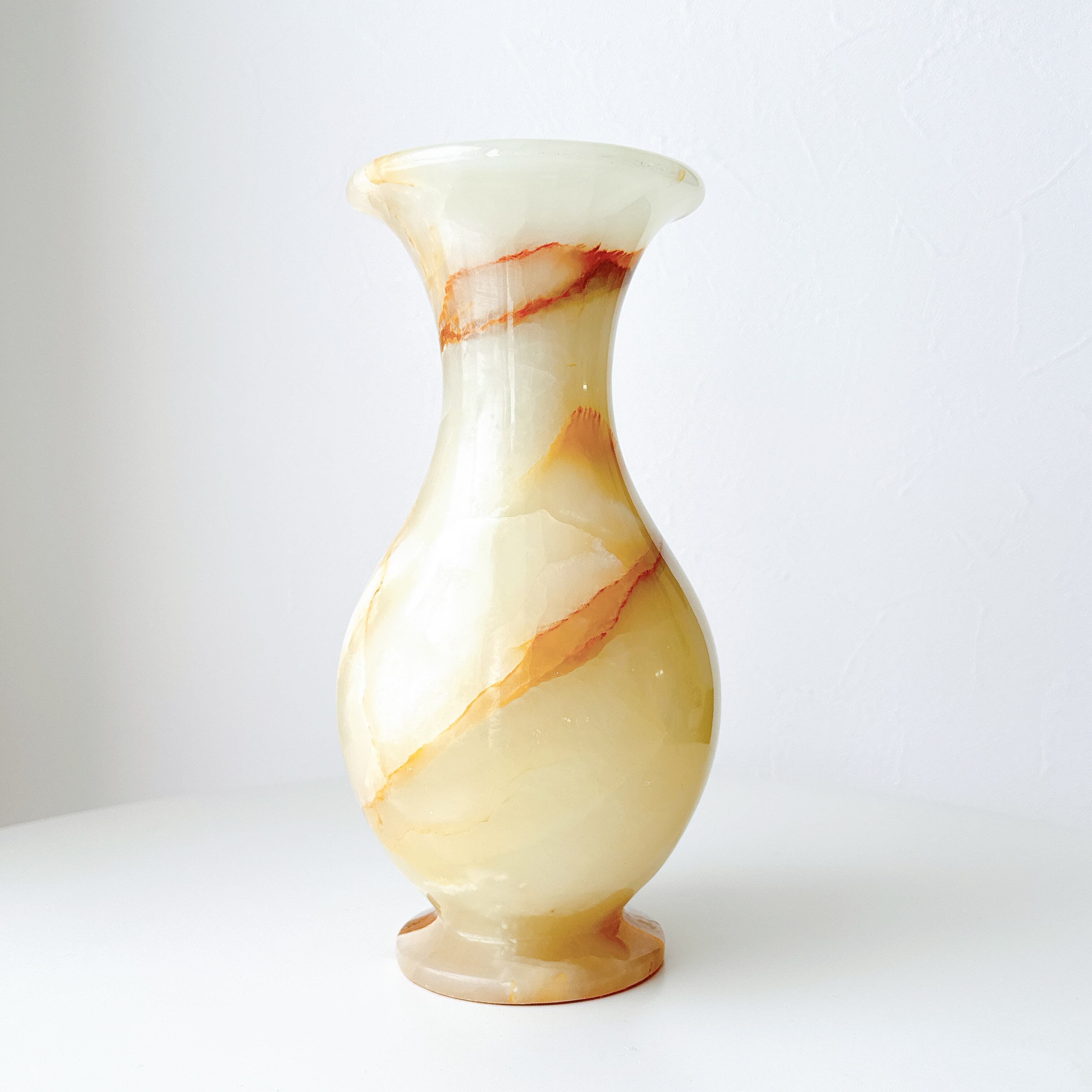 【やわらかな乳白色に琥珀色が流れるオニキスのフラワーベース】
