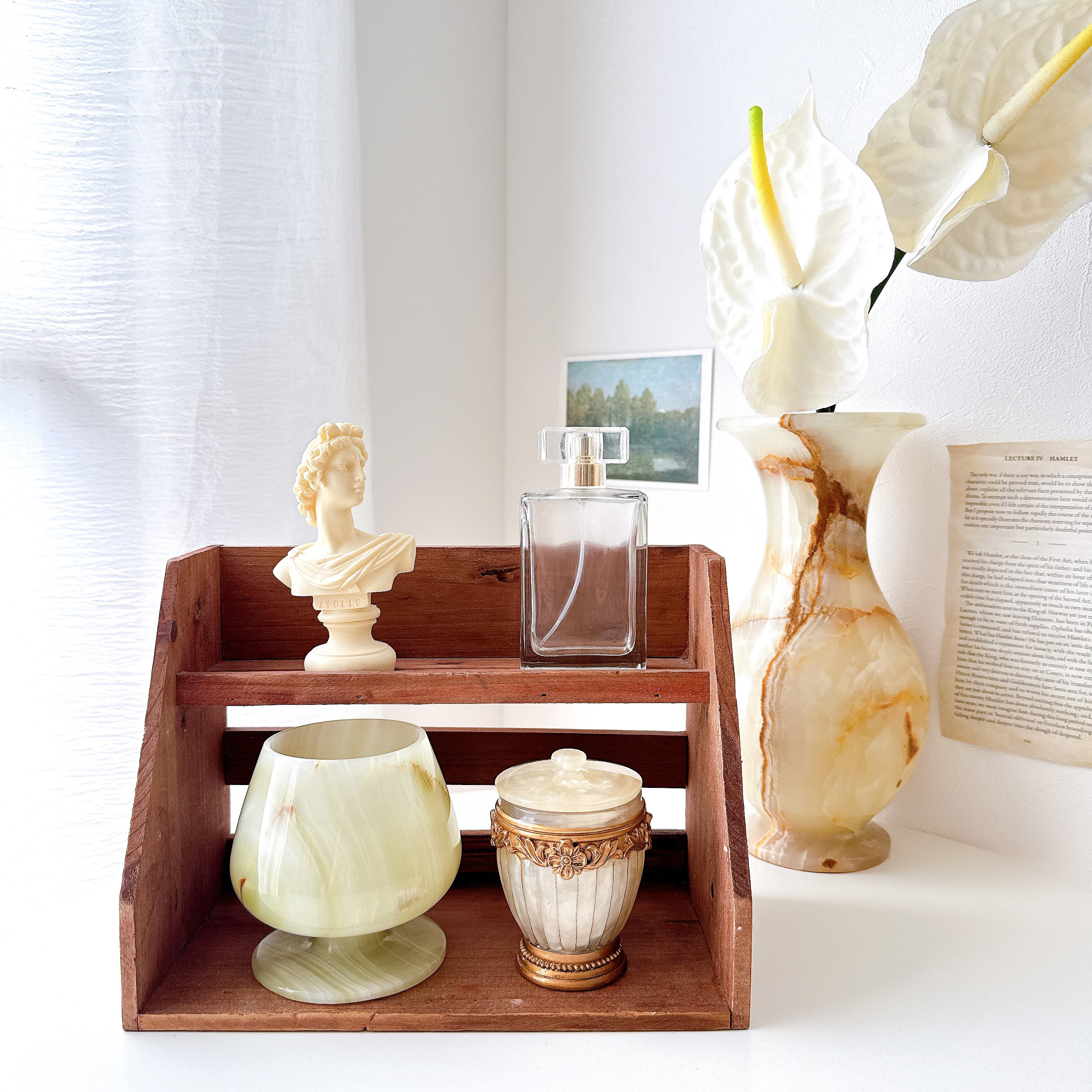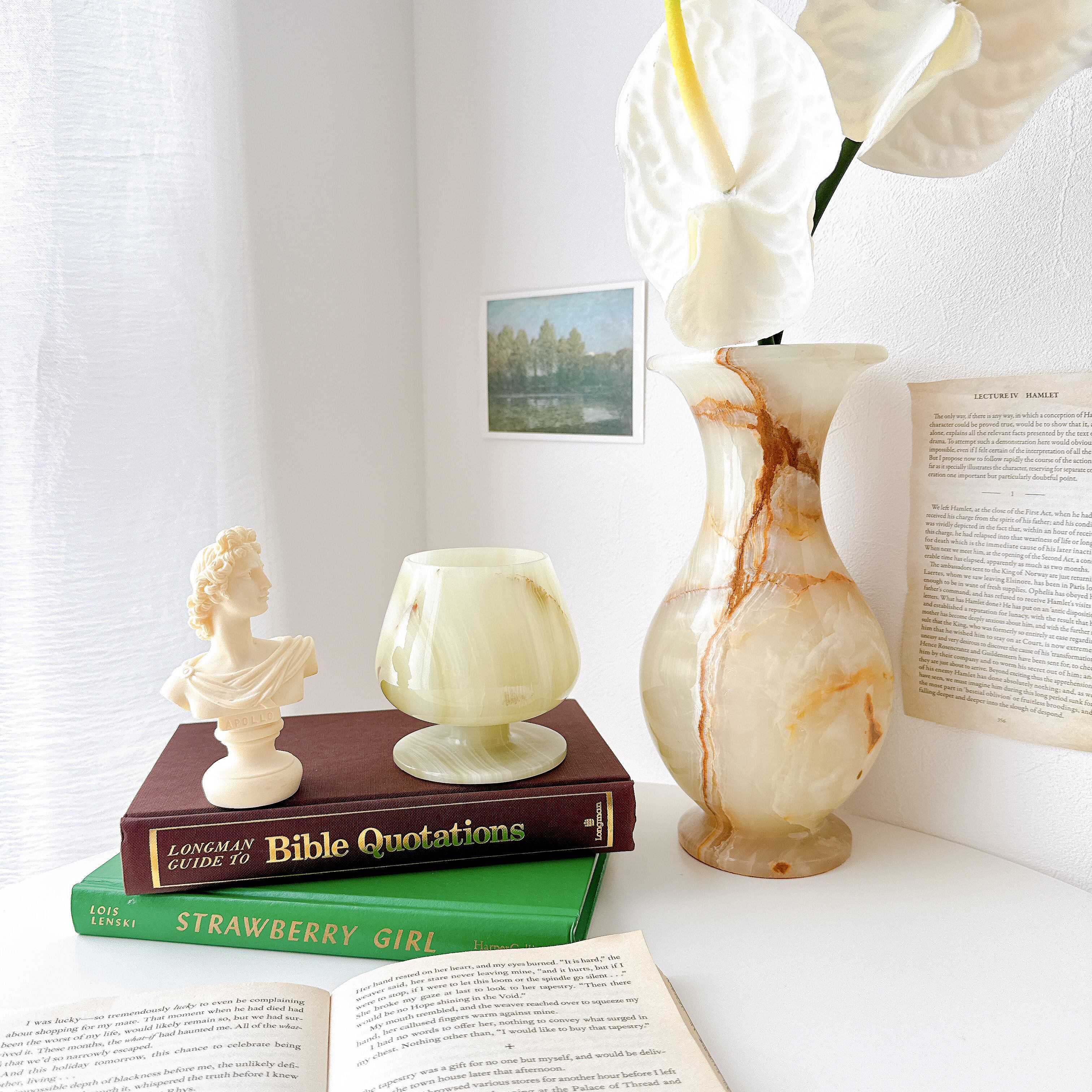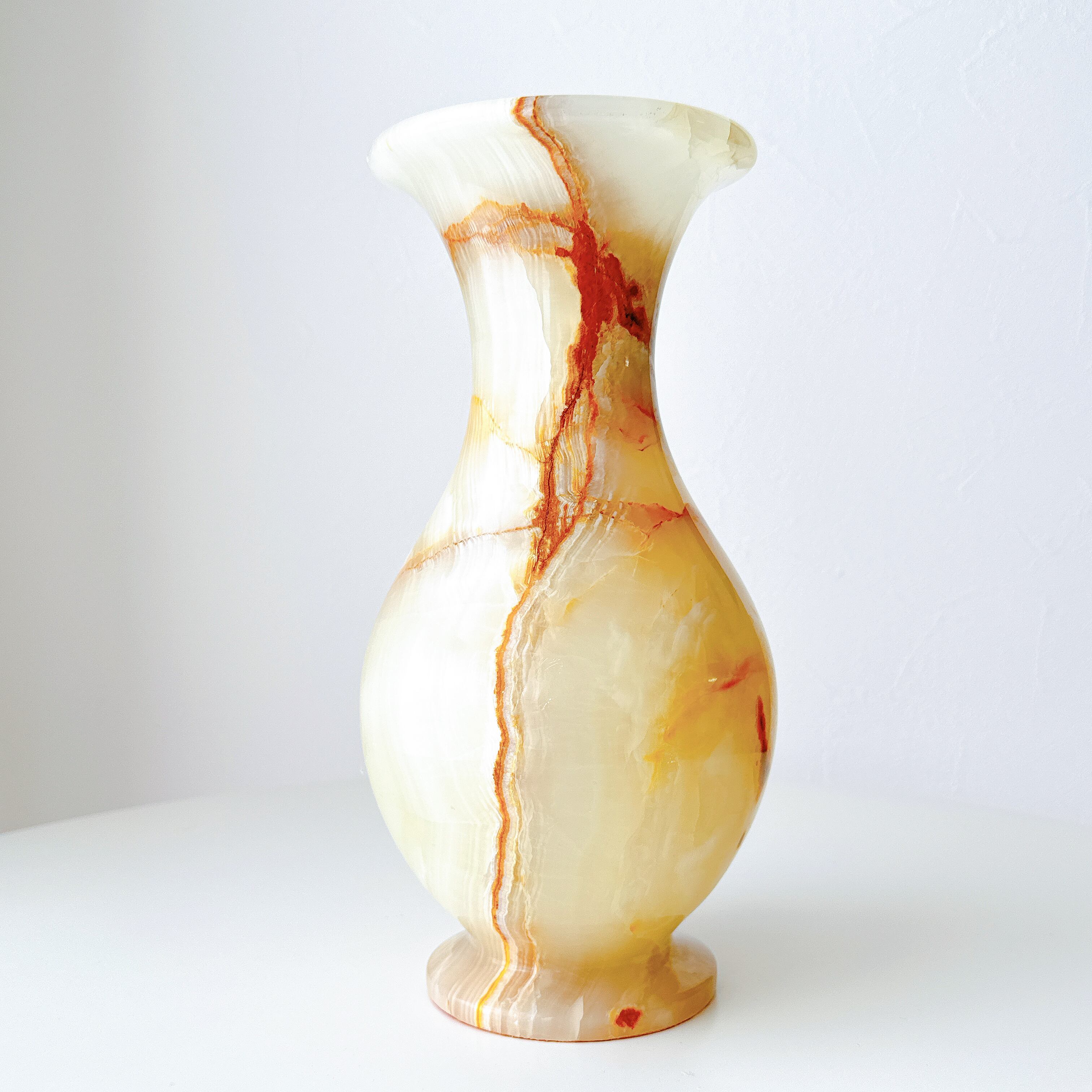 【やわらかな乳白色に琥珀色が流れるオニキスのフラワーベース】