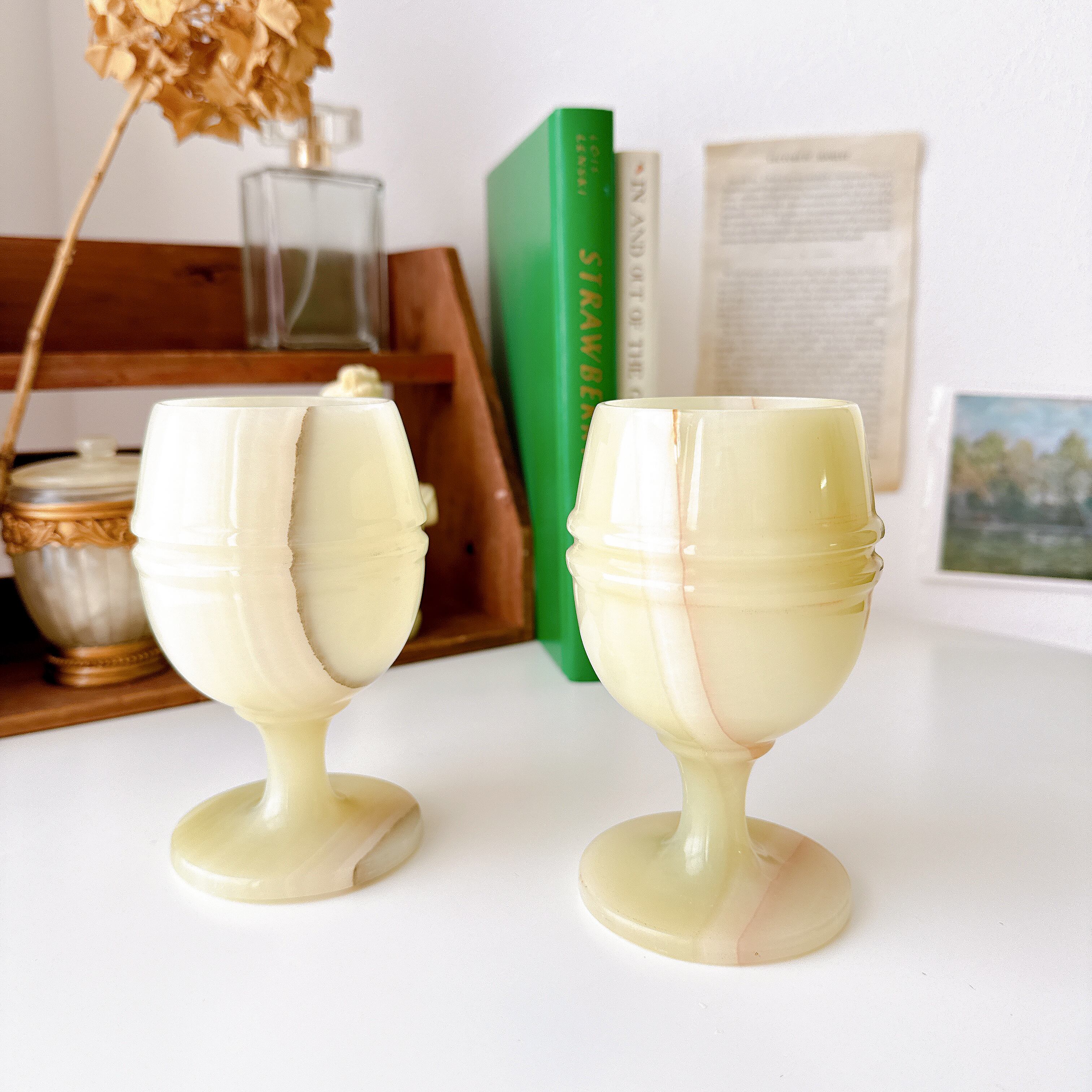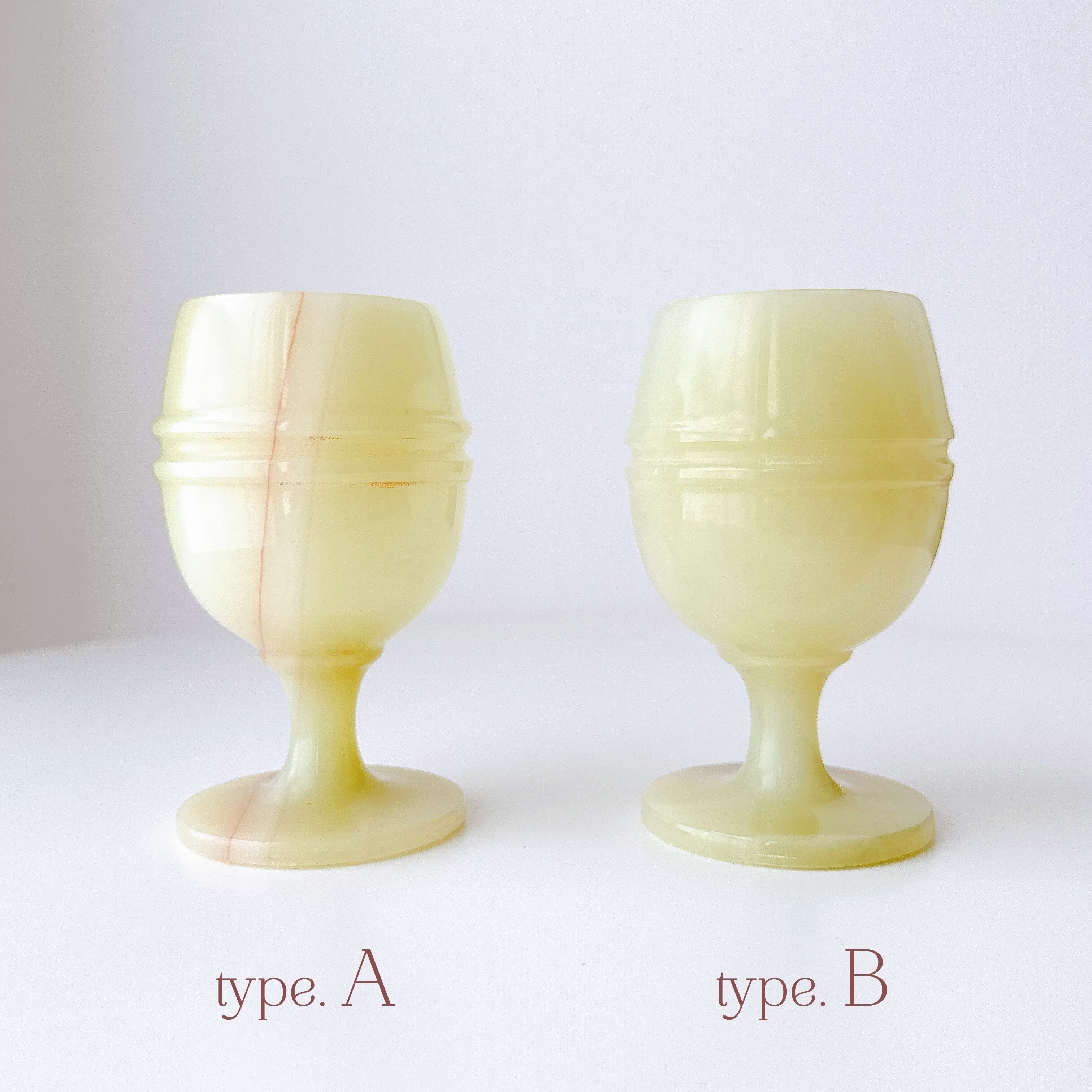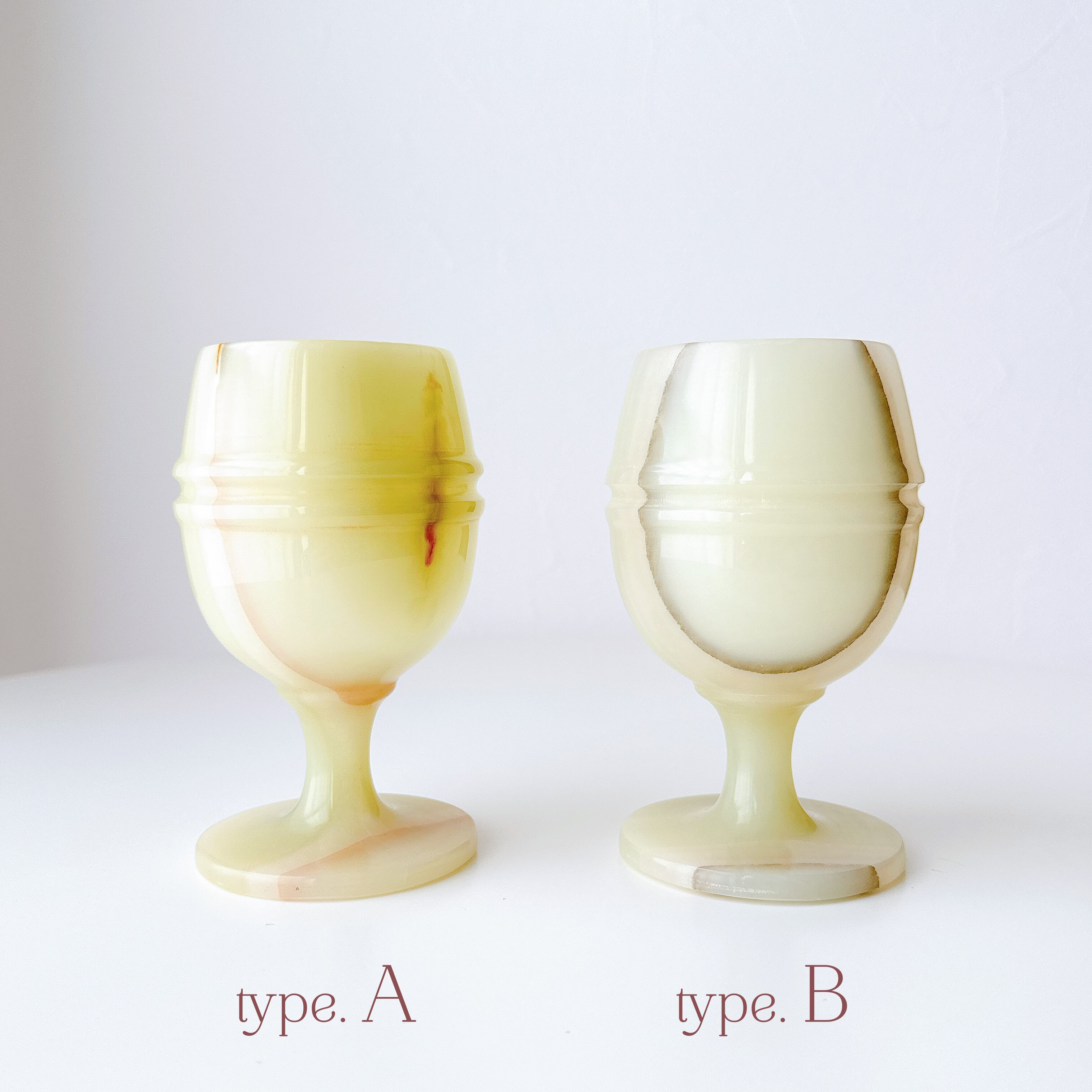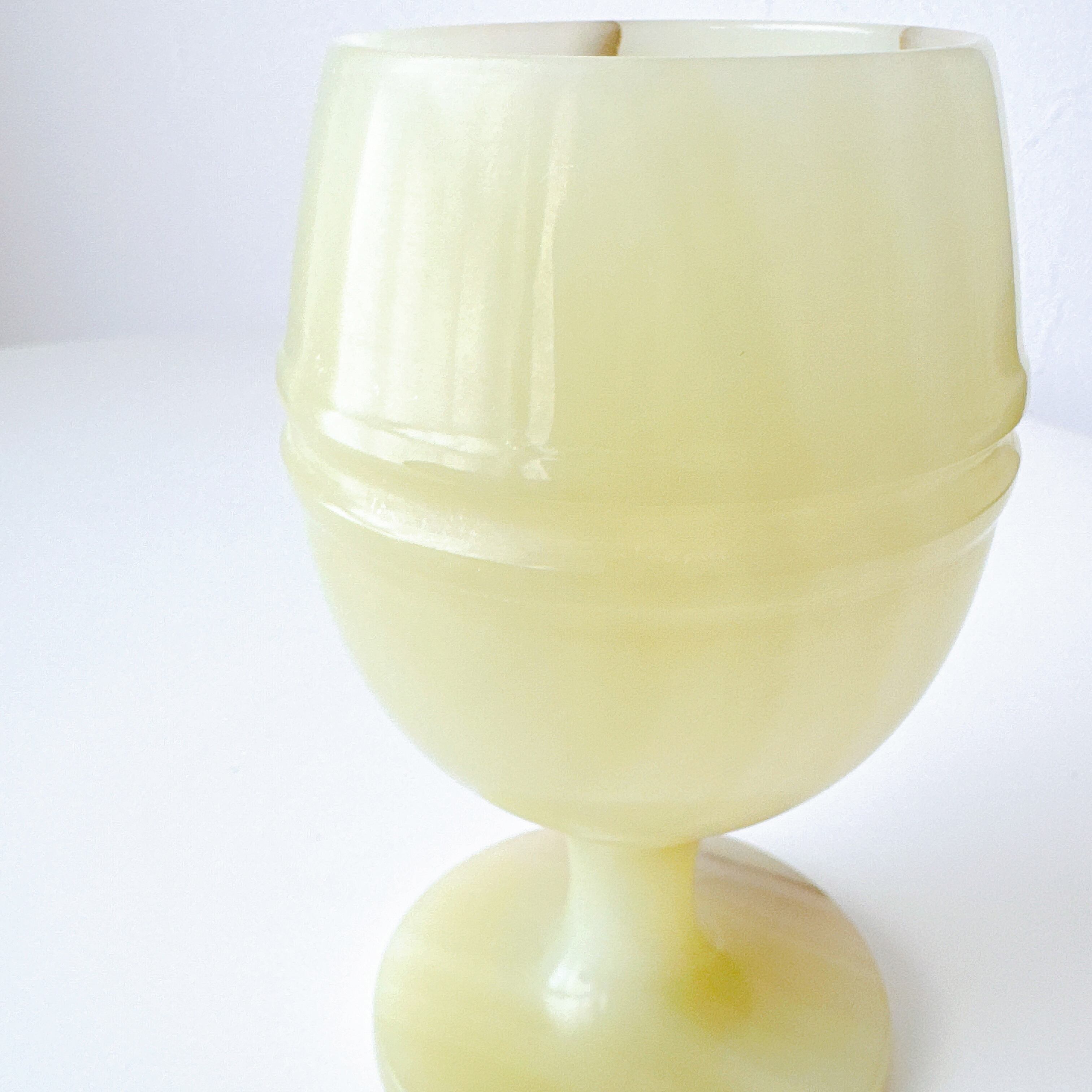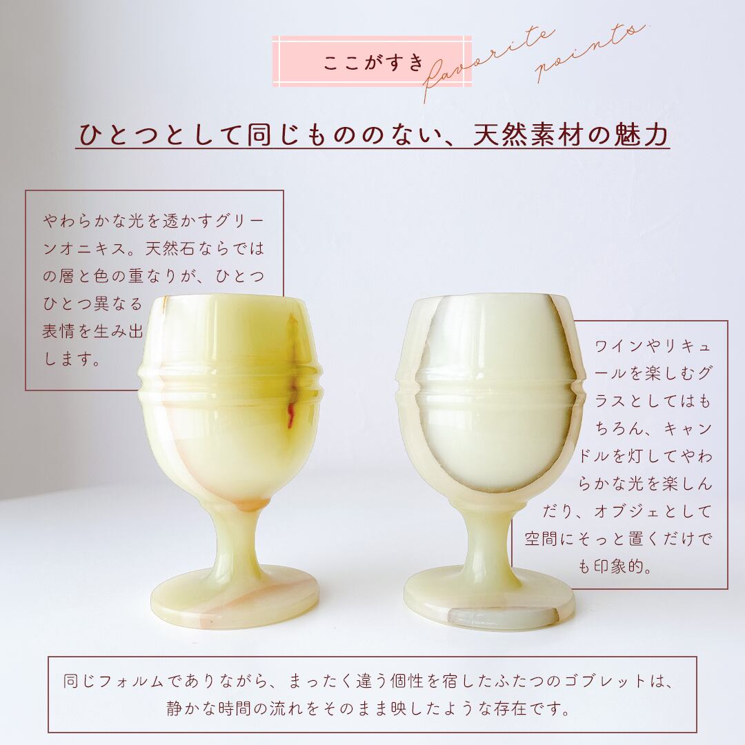やわらかな光を内側にたたえたような、グリーンオニキスのワインゴブレット。