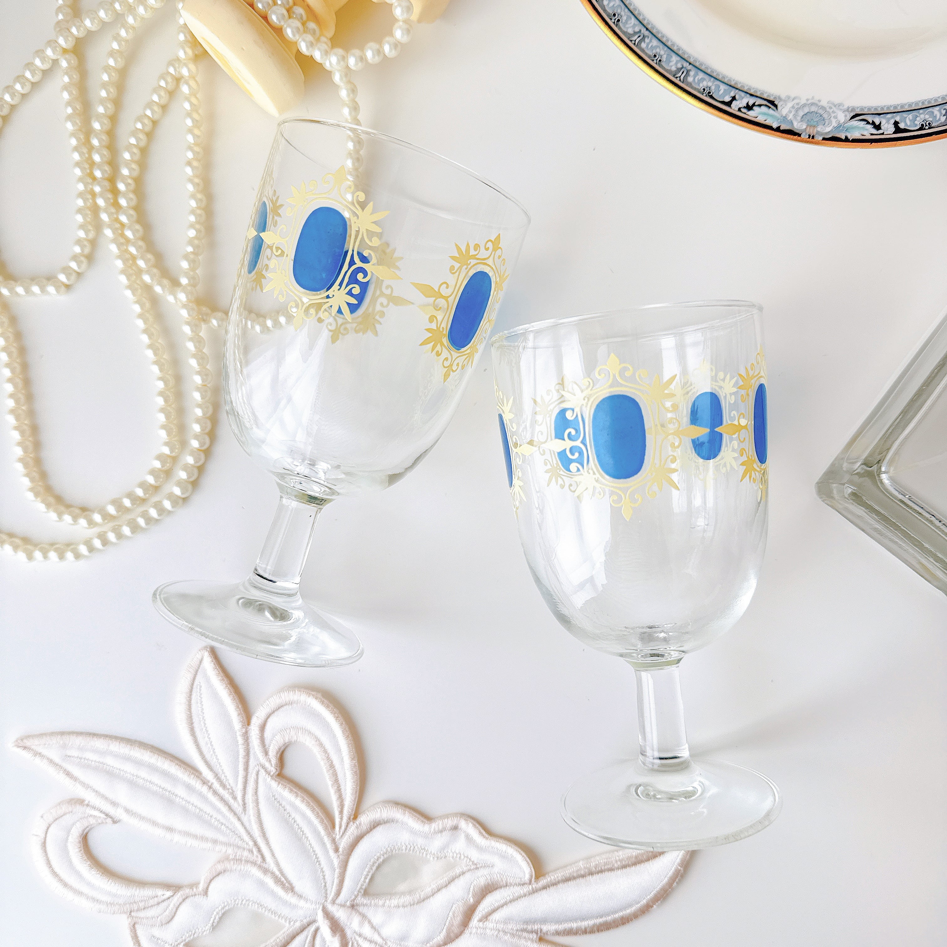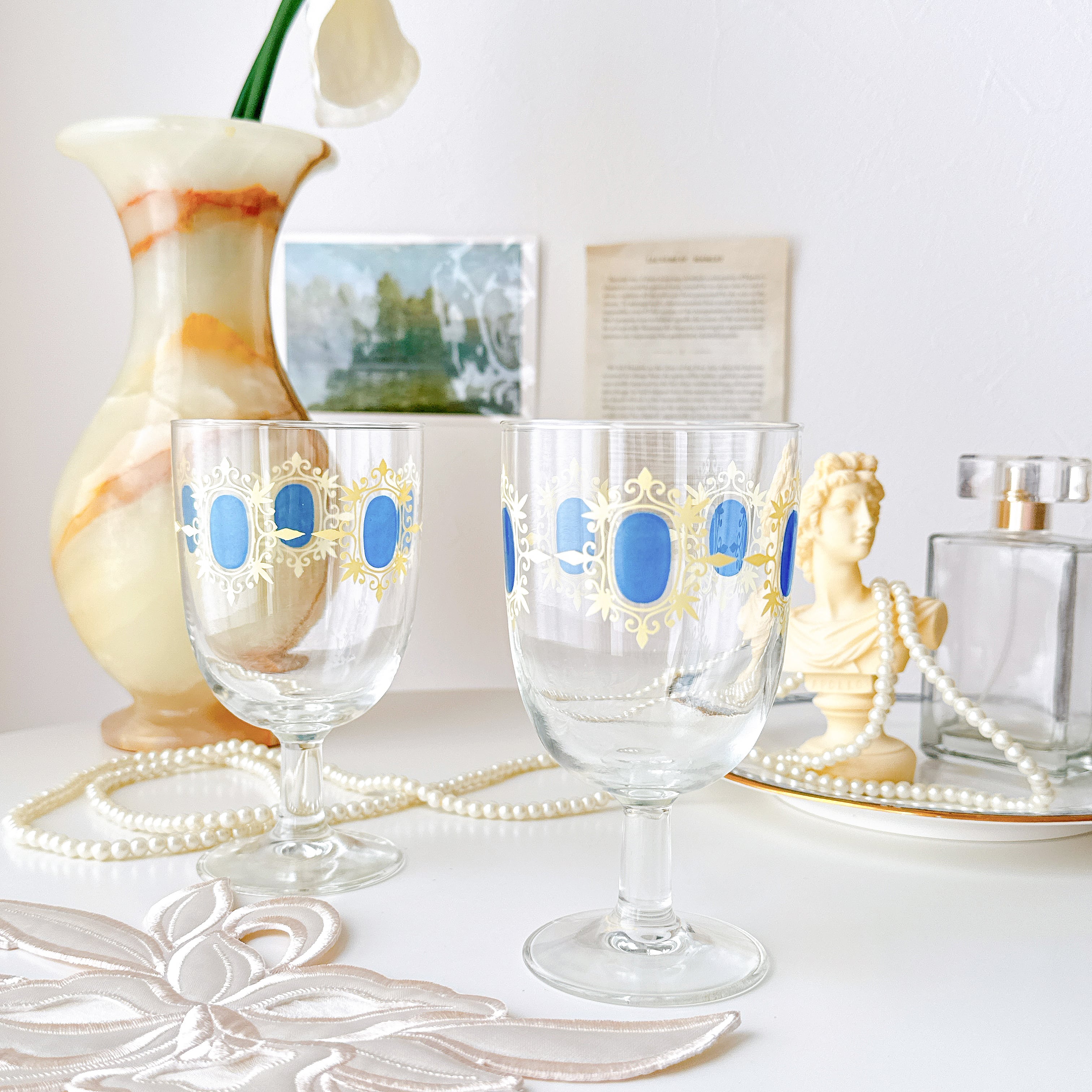 【vintage】ブルーカメオのワイングラス