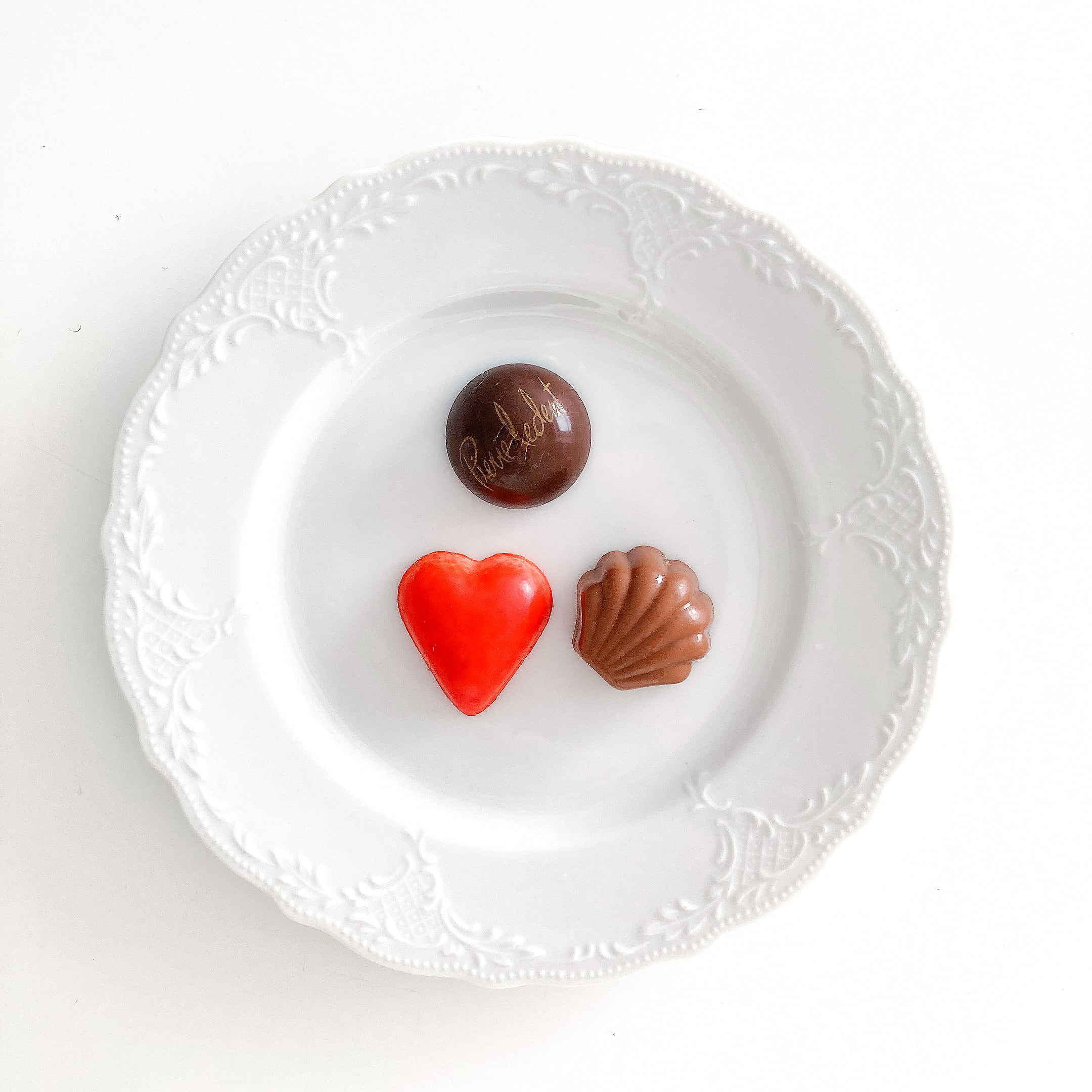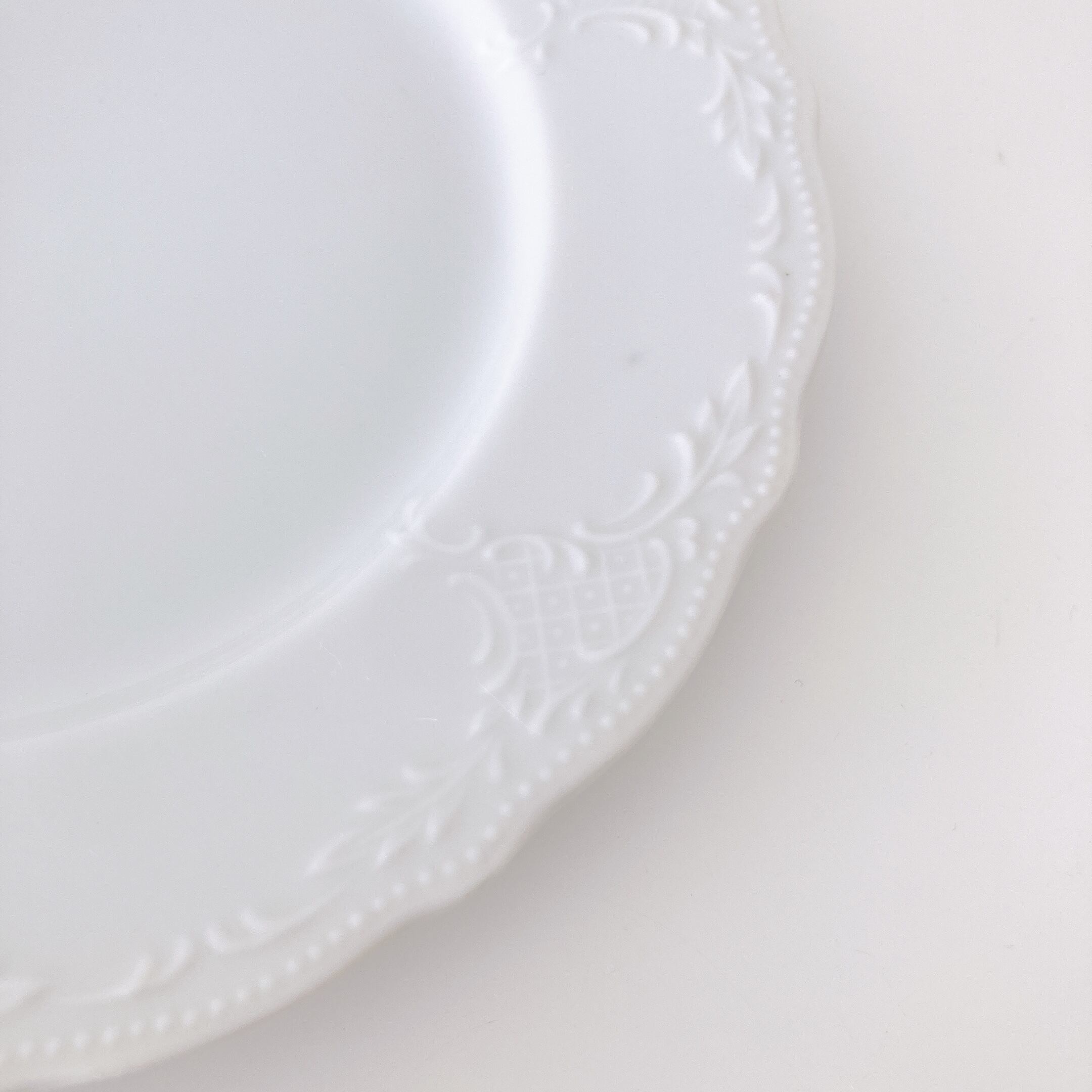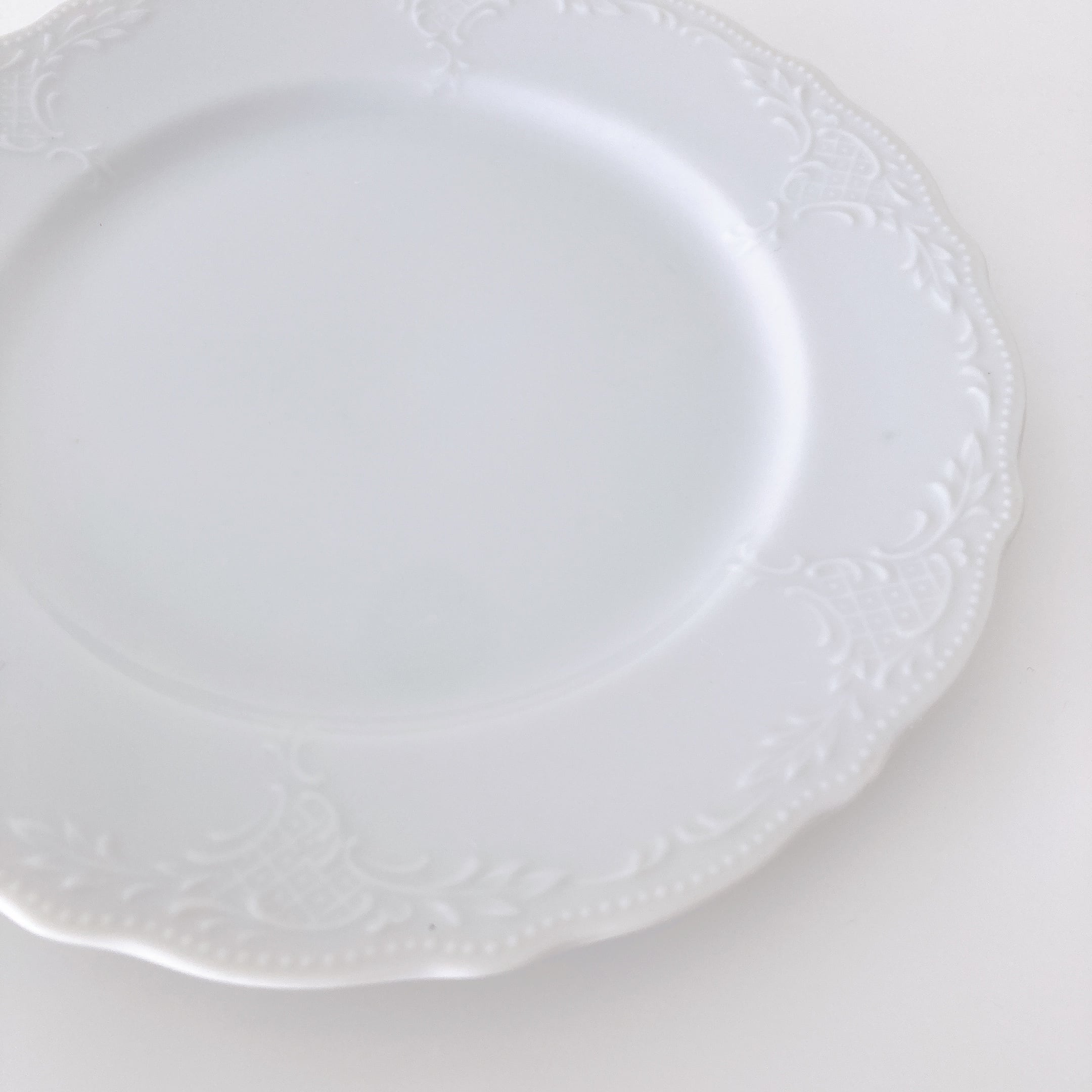 縁のフリルと彫刻のような縁飾りが可愛いデザートプレート。