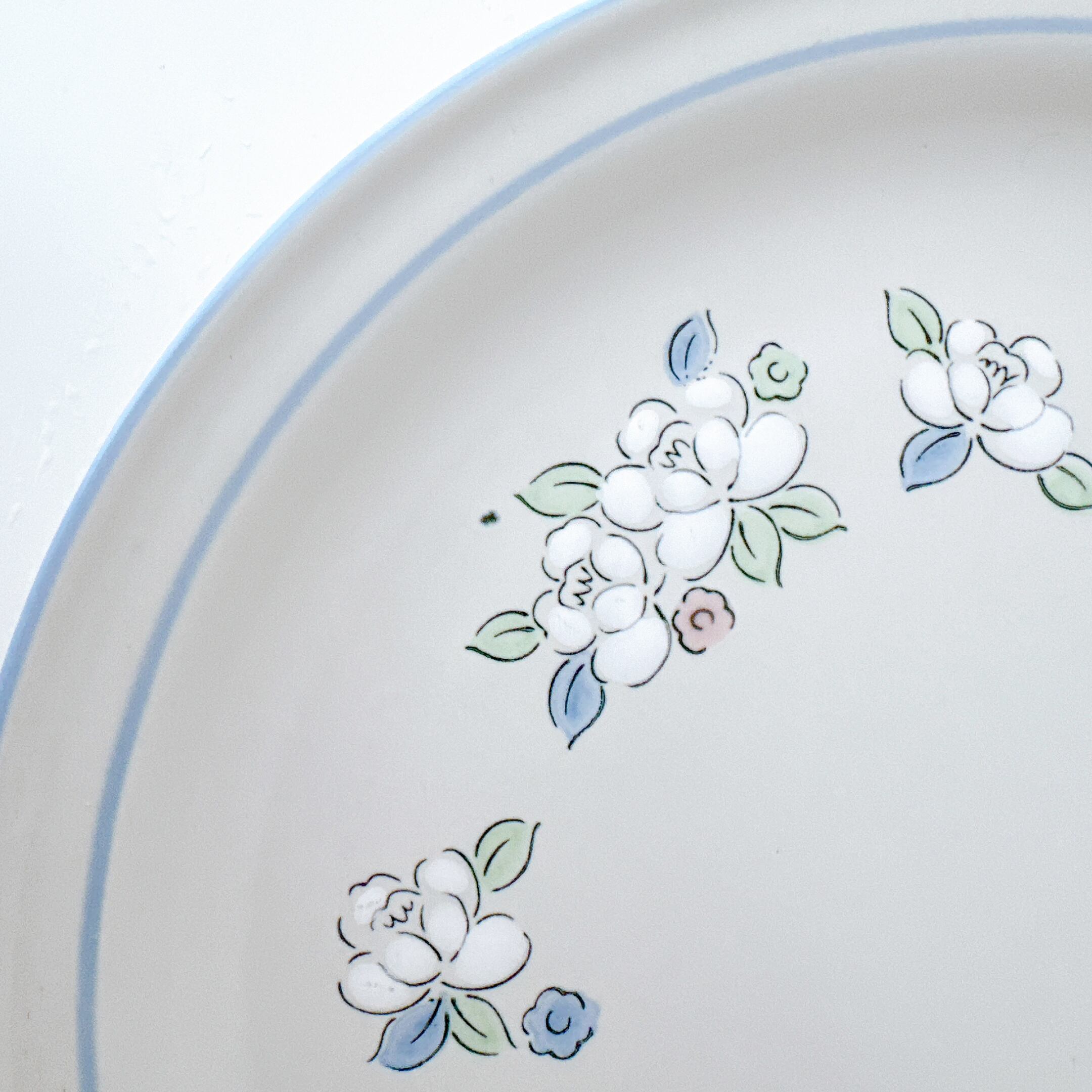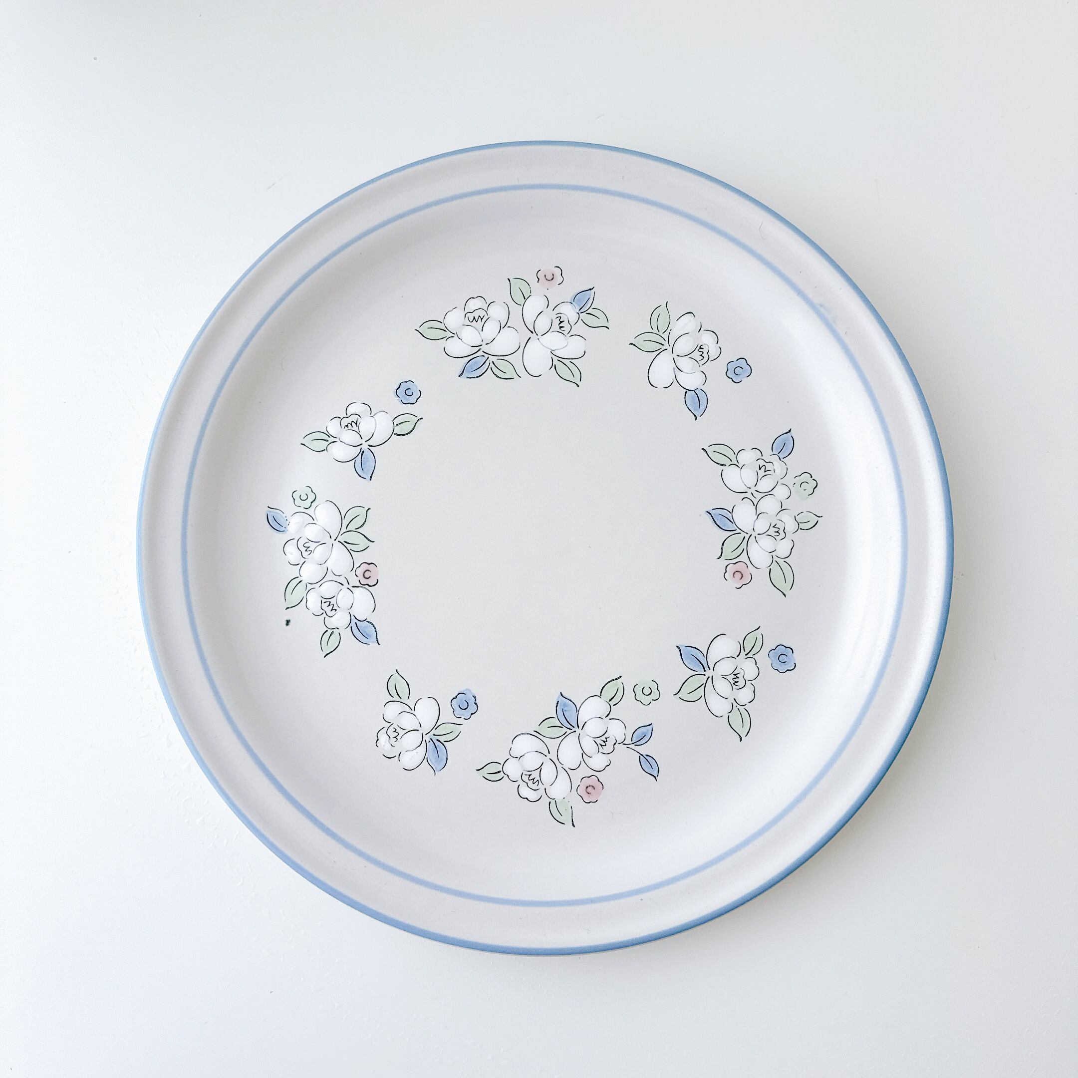 ブルーの縁取とハンドペイントのフラワー模様がとても可愛い