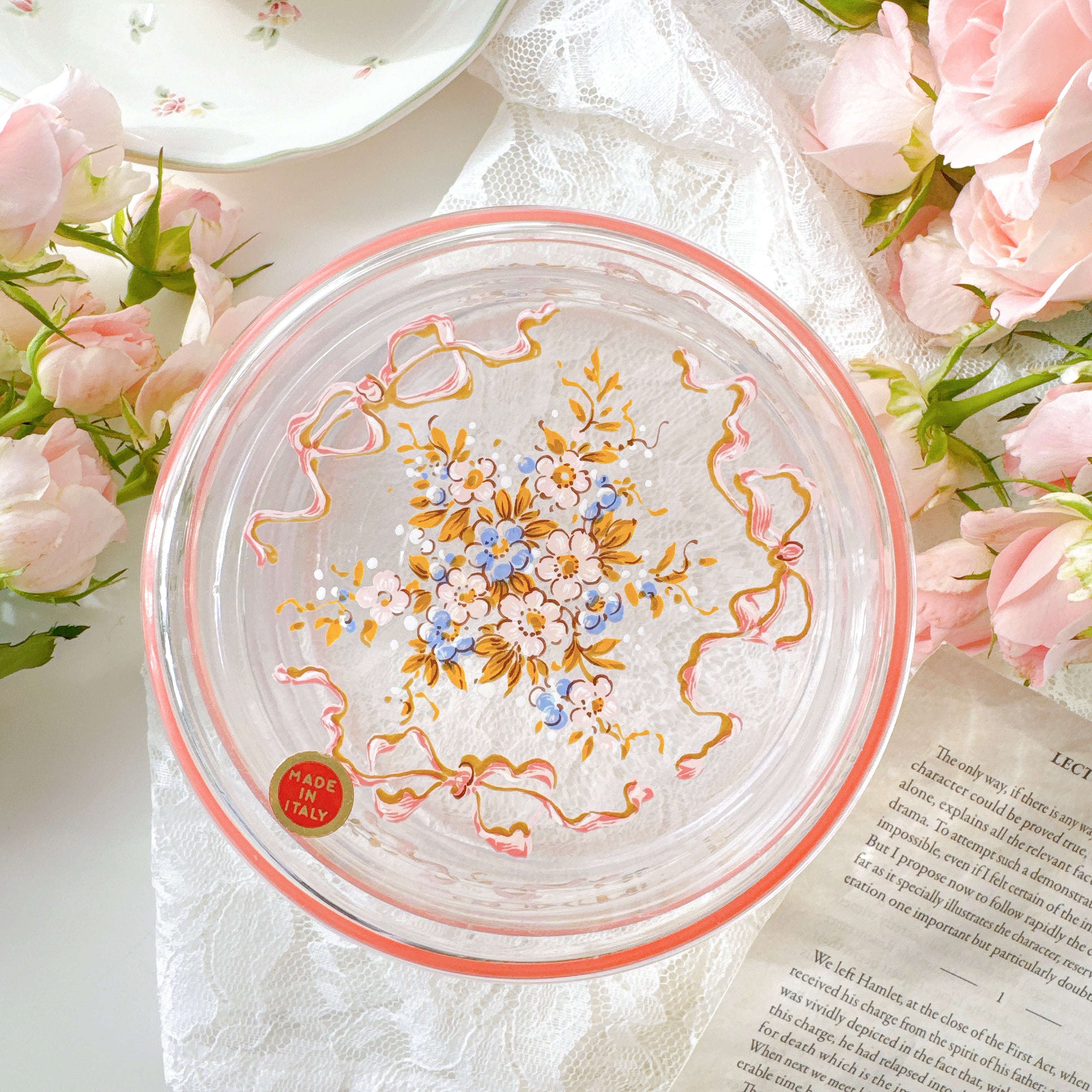 ハンドペイントのようなタッチで描かれたリボンとお花の