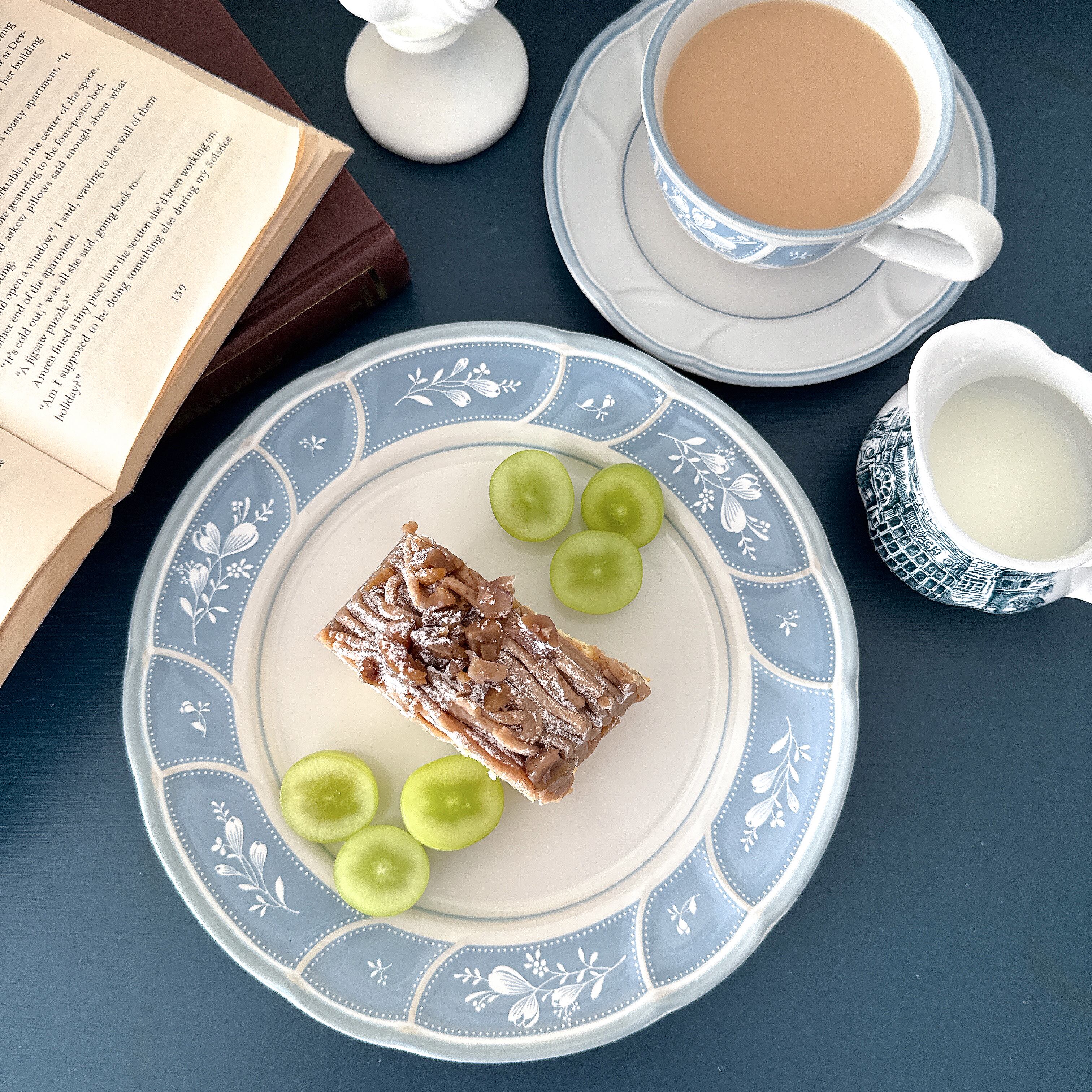 白みの帯びた美しいブルーにホワイトの小花や葉を描いた