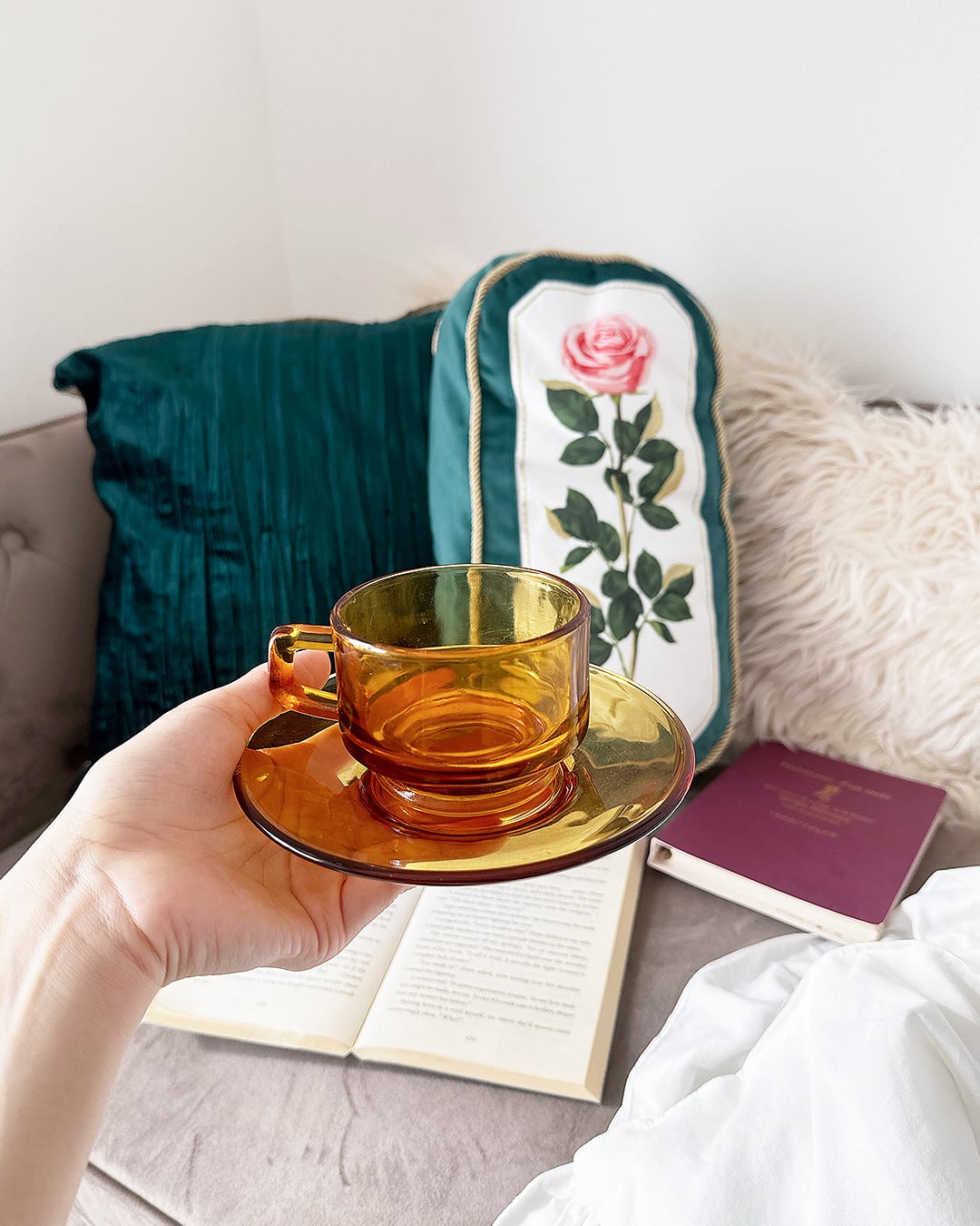 まるでべっこう飴のような、とろりとした艶のあるコーヒーカップ。ちょっぴりレトロな雰囲気が秋っぽい。読書のおともに。べっこう飴のようなコーヒーカップ&ソーサー
