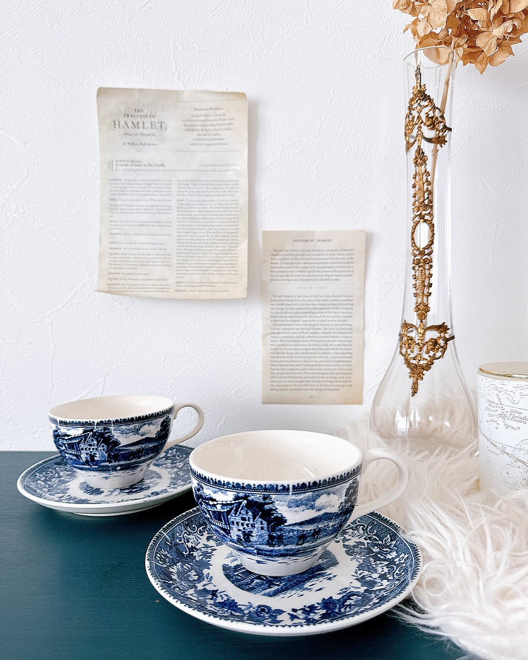 深い青とトワルドジュイの組み合わせも秋の食卓に良く似合います。ぽってりとした丸みのあるフォルムはカフェオレやカプチーノにもおすすめ。トワルドジュイ柄ティーカップ&ソーサー