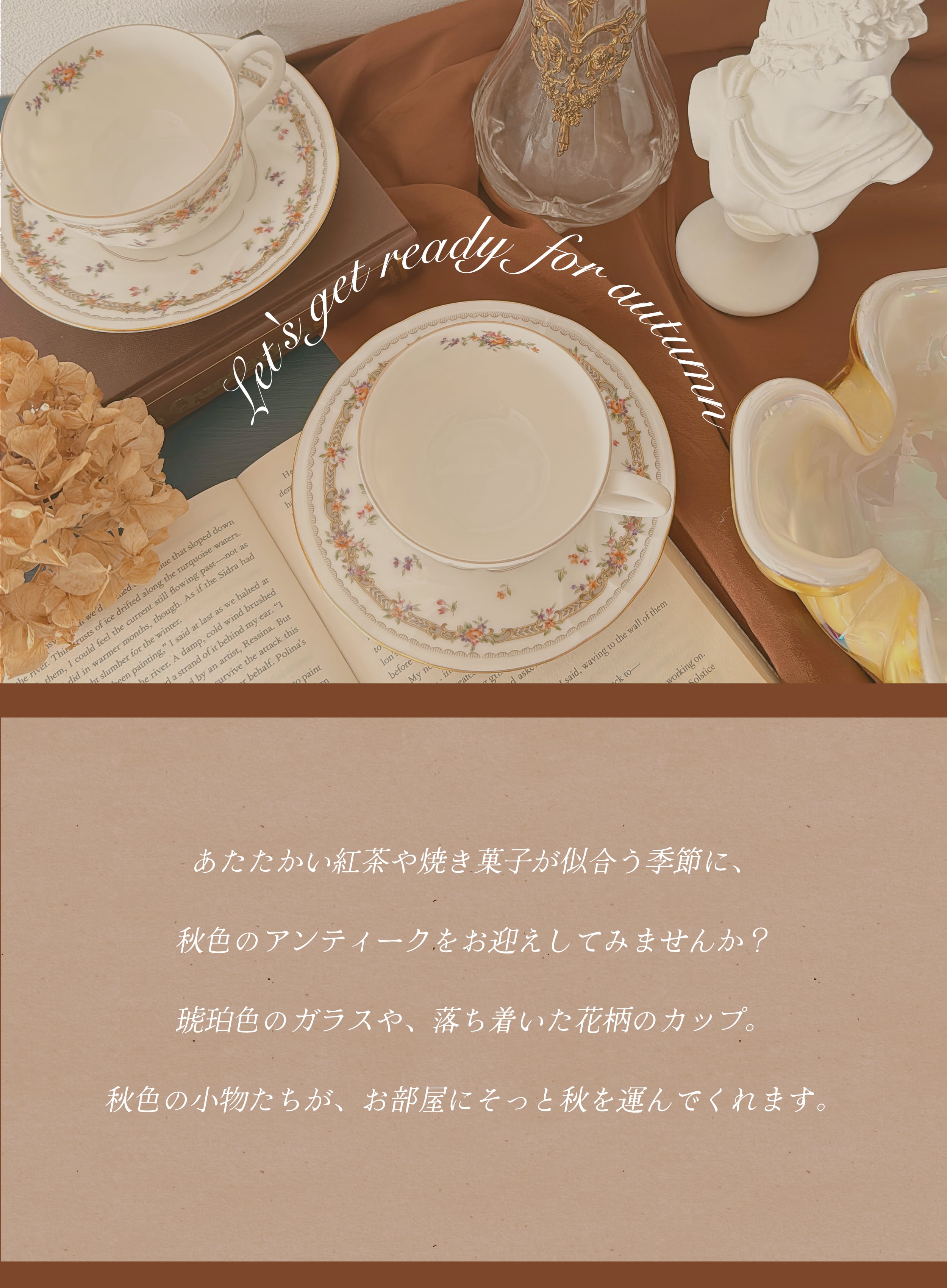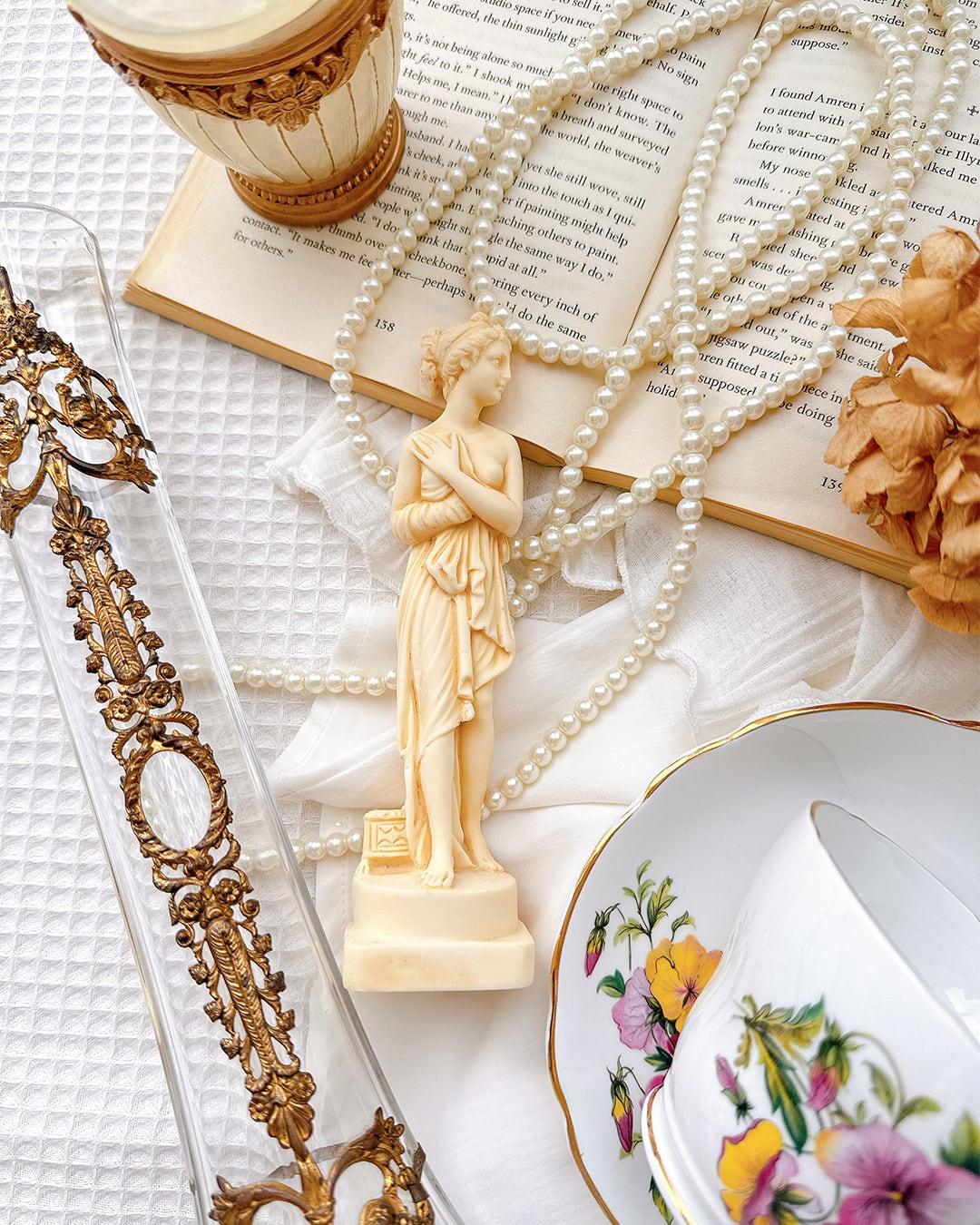 アイボリー、ブラウン、ゴールド...オータムカラーと芸術を感じるデザインの小物でインテリアも秋らしくチェンジ。ギリシャ神話ペルセポネの小さなオブジェ
