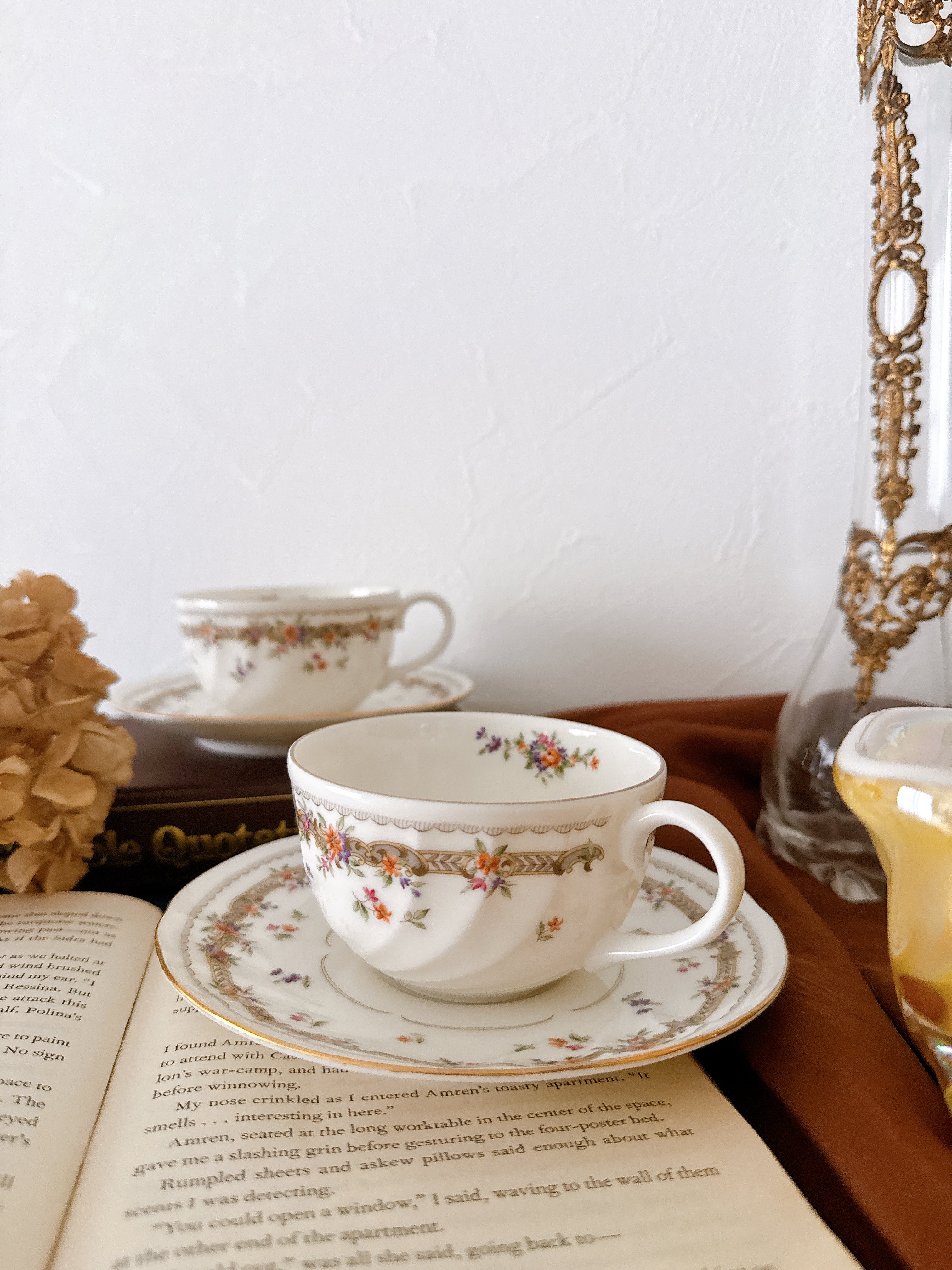 シックな色味が秋らしいNIKKOのティーカップ。クラシカルな装飾にオレンジとパープルの小花が可愛らしいアクセント。NIKKO 秋色小花のティーカップ&ソーサー